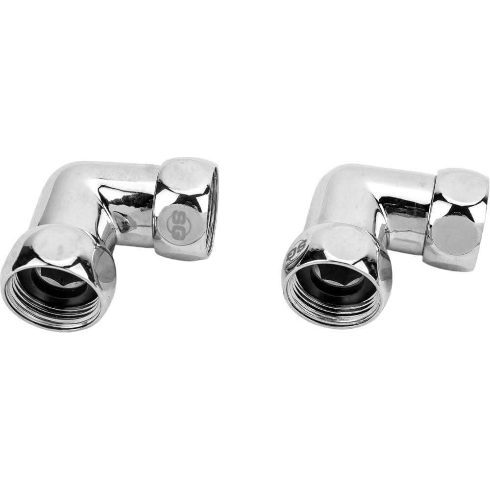 Уголок для полотенцесушителя SG г/г 3/4"х3/4", хром, 2 шт 740SCH0505 - фитинг из хромированной латуни, предназначенный для сборки и монтажа полотенцесушителя. Резьбовой фитинг представляет собой муфту с накидной гайкой с двух сторон.