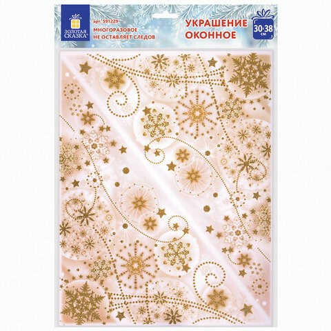 Украшение для окон и стекла ЗОЛОТАЯ СКАЗКА "Узоры из золотых снежинок 3", 30х38 см, ПВХ, 591229