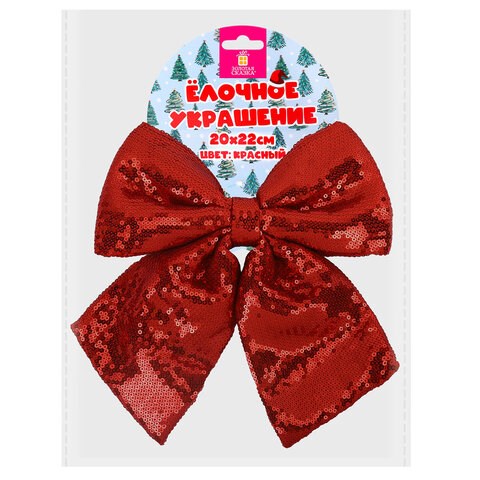 Украшение ёлочное 20х22 см, "Бант с пайетками", полиэстер, красный, ЗОЛОТАЯ СКАЗКА, 592480