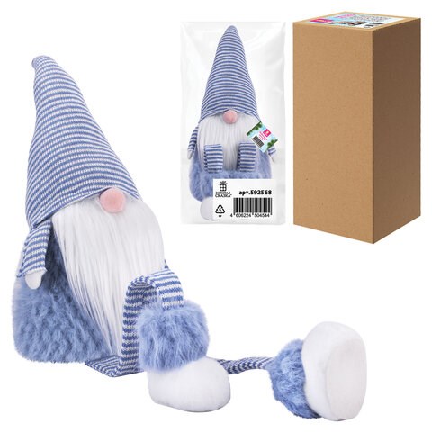 Гном упакован в пакет с клеевым краем, а затем в прочный гофрокороб. Материал – полиэстер, полипропиленовый хлопок, пенопласт, песок. Размер – 63 см.