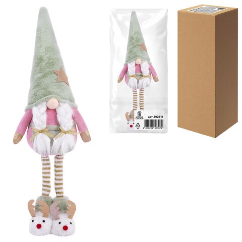 Украшение новогоднее интерьерное 64 см "Гном в тапочках", полиэстер, ЗОЛОТАЯ СКАЗКА, 592511