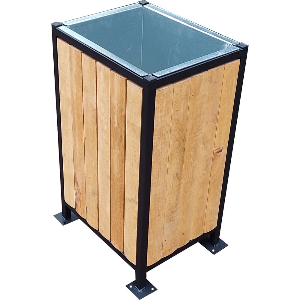 Уличная урна Станкоинструмент и оснастка №22 4811381026901 имеет съемный оцинкованный бак. Каркас изготовлен из прочного металла, покрытого порошковой краской. Древесина обработана морилкой с защитными свойствами.