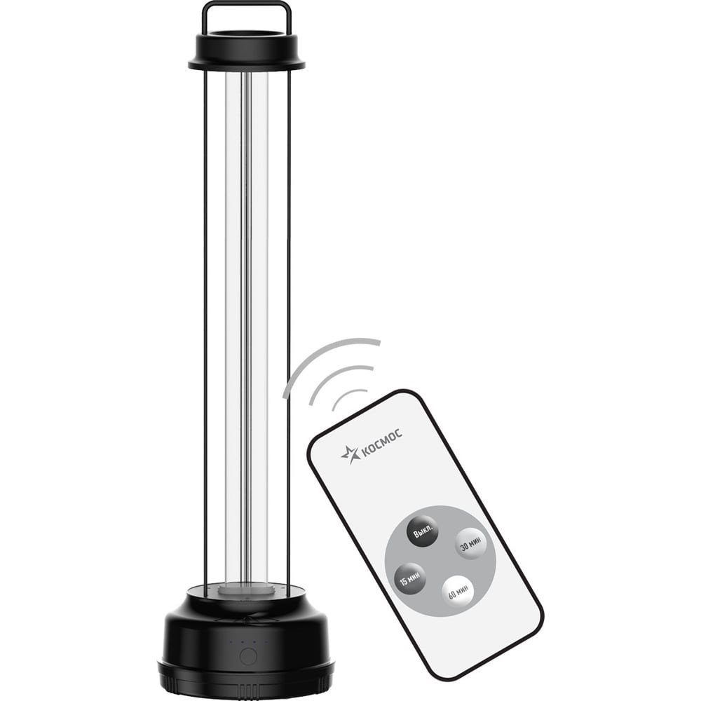 Космос Светильник ультрафиолитовый KOС_UVG 55W, без озоновые KOC_UVG55WR KOC_UVG55WR используется для уничтожения вирусов, микробов и грибков в помещении. Отличается от старых кварцевых ламп тем что не выделяет токсичный озон. Имеет три режима работы в зависимости от размера комнаты: 15 минут на 15-17м2, 30 минут на 30-35 м2 и 60 минут на 60м2. Дистанционный пульт дает возможность управлять светильником да же вне зоны прямой видимости.