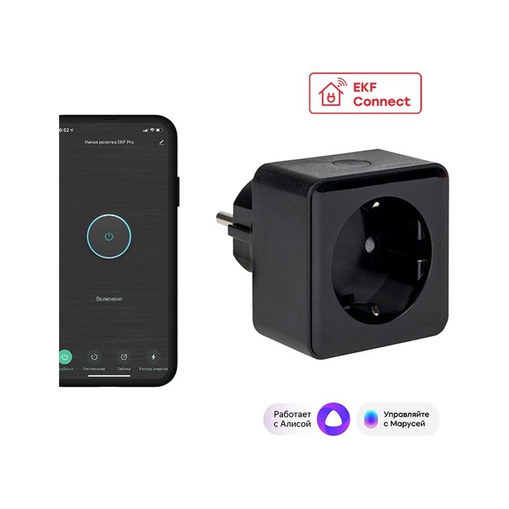 Умная розетка EKF Connect Pro поможет сделать обычные приборы умными. При помощи приложения для Android и iOS, а также при помощи голосовых помощников Алиса от Яндекса, Маруся от VK и Салют от Сбера можно управлять светильниками, вентиляторами, обогревателями, увлажнителями и любыми другими приборами, которые начинают работать сразу же при подаче напряжения. Версия Pro позволяет измерять напряжение, силу тока, мощность и собирать статистику энергопотребления по дням и месяцам.