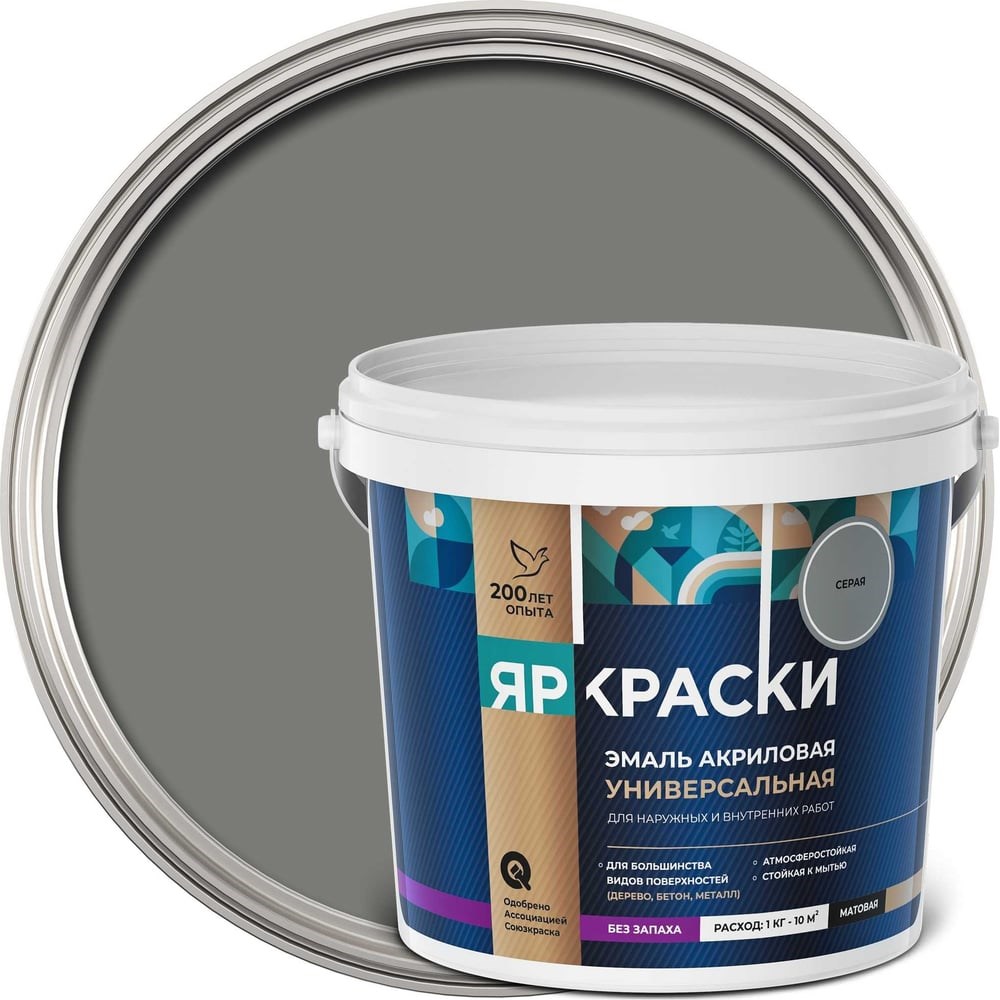 Универсальная акриловая эмаль ЯРОСЛАВСКИЕ КРАСКИ (серая; матовая; 0.9 кг) О05192 подходит для окрашивания минеральных, бетонных, металлических и деревянных поверхностей (в том числе деревянной мебели, ДСП, ДВП) внутри и снаружи помещений. После высыхания образует идеально гладкое матовое покрытие, стойкое к атмосферным воздействиям и мытью с применением бытовой химии. Окрашенная поверхность приобретает отличную износостойкость и сохраняет свои свойства не менее 5 лет.