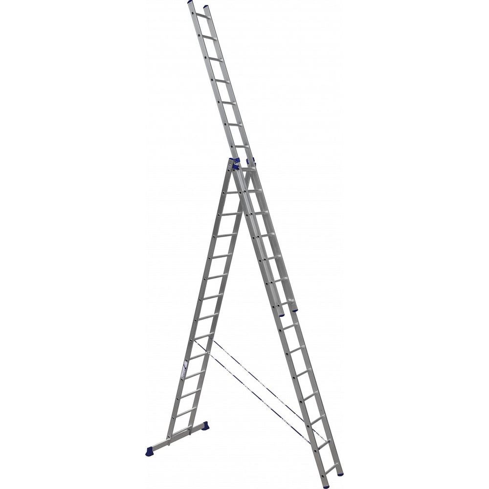 Лестница алюминиевая трехсекционная универсальная– замечательный выбор для проведения работ на высоте.Тетивы, ступени и стабилизатор изготовлены из высокопрочного алюминиевого сплава (ГОСТ 22233). Лестница является разборной.Ее конструкция позволяет изменять конфигурацию в зависимости от требований и задач. Может использоваться как приставная лестница или стремянка.Узкая секция может применяться, как самостоятельная приставная лестница,что делает ее чрезвычайно универсальной и удобной в различных ситуациях.Алюминиевый сплав обеспечивает изделию прочность и легкость. Продуманное расположение ступеней создает оптимальные условия для подъема и безопасного удержания на высоте.Идеальный помощник как на производстве, так в офисе, быту или на даче.Лестницу можно использовать вне помещения. Конструкция стойкая к воздействию неблагоприятных погодных условий благодаря коррозионностойким свойствам алюминия. Этот фактор является одним из главных преимуществ модели перед аналогичными решениями из других материалов.!!!Универсальность конструкции позволяет доукомплектовать лестницу: дополнительными Заглушками ZGL, Опорой на стену АК001, АК002, Кронштейном для крыши АК003, Универсальным креплением для лестниц на багажник автомобиля АК010, стабилизаторомSTB!!!Завод – изготовитель оставляет за собой право в одностороннем порядке вносить изменения в конструкцию, в целях улучшения технических характеристик.на линейные размеры отклонение может составлять +-5 мм, на вес изделия +-5%