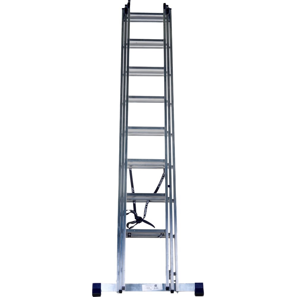 Лестница алюминиевая трехсекционная универсальная– замечательный выбор для проведения работ на высоте.Тетивы, ступени и стабилизатор изготовлены из высокопрочного алюминиевого сплава (ГОСТ 22233). Лестница является разборной.Ее конструкция позволяет изменять конфигурацию в зависимости от требований и задач. Может использоваться как приставная лестница или стремянка.Узкая секция может применяться, как самостоятельная приставная лестница,что делает ее чрезвычайно универсальной и удобной в различных ситуациях.Алюминиевый сплав обеспечивает изделию прочность и легкость. Продуманное расположение ступеней создает оптимальные условия для подъема и безопасного удержания на высоте.Идеальный помощник как на производстве, так в офисе, быту или на даче.Лестницу можно использовать вне помещения. Конструкция стойкая к воздействию неблагоприятных погодных условий благодаря коррозионностойким свойствам алюминия. Этот фактор является одним из главных преимуществ модели перед аналогичными решениями из других материалов.!!!Универсальность конструкции позволяет доукомплектовать лестницу: дополнительными Заглушками ZGL, Опорой на стену АК001, АК002, Кронштейном для крыши АК003, Универсальным креплением для лестниц на багажник автомобиля АК010, стабилизатором STB!!!Завод – изготовитель оставляет за собой право в одностороннем порядке вносить изменения в конструкцию, в целях улучшения технических характеристик.на линейные размеры отклонение может составлять +-5 мм, на вес изделия +-5%