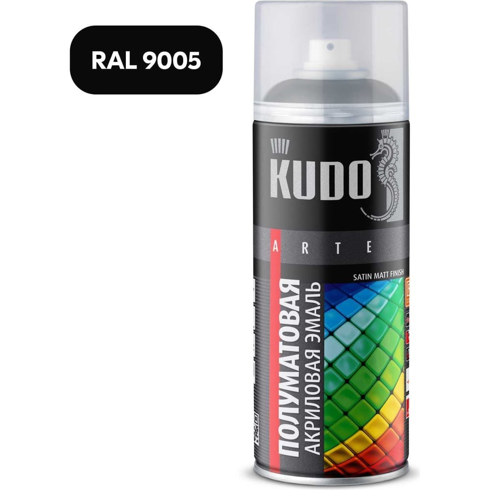 Эмаль универсальная акриловая KUDO satin RAL 9005 чёрная KU-0A9005 предназначена для декоративного окрашивания большинства оснований (металл, древесина, пластмасса). Эмаль отколерована в соответствии с европейским цветовым стандартом RAL. Благодаря аэрозольному распылению продукт легко наносится в труднодоступных местах внутри и снаружи помещений. Состав отличается хорошей укрывистостью и атмосферостойкостью, превосходной адгезией к загрунтованной поверхности.