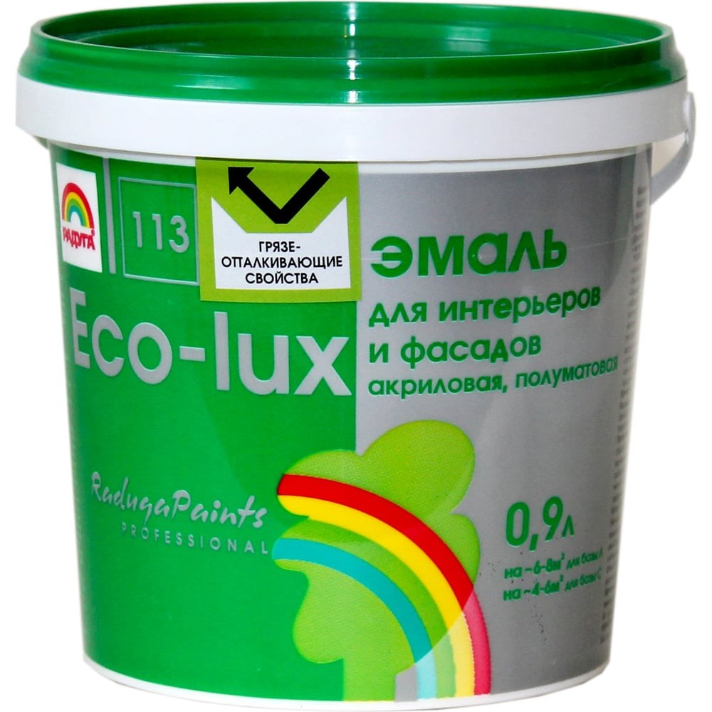 Универсальная эмаль Радуга Эко-Люкс ВД-АК 113 База А 0,9 л, под колеровку 141367 применяется для нанесения на обои, деревянные, металлические и минеральные поверхности. Продукт на акриловой основе не имеет запаха, не токсичен, допускается для работ в детских и лечебных учреждениях. Благодаря атмосферостойким свойствам, эмаль используется для внутренних и наружных работ. Моющееся покрытие выдерживает многократную влажную уборку. Состав при необходимости разбавляется водой не более 5%. Технические характеристики: Хранить при температуре: от +5°С до +30°С.