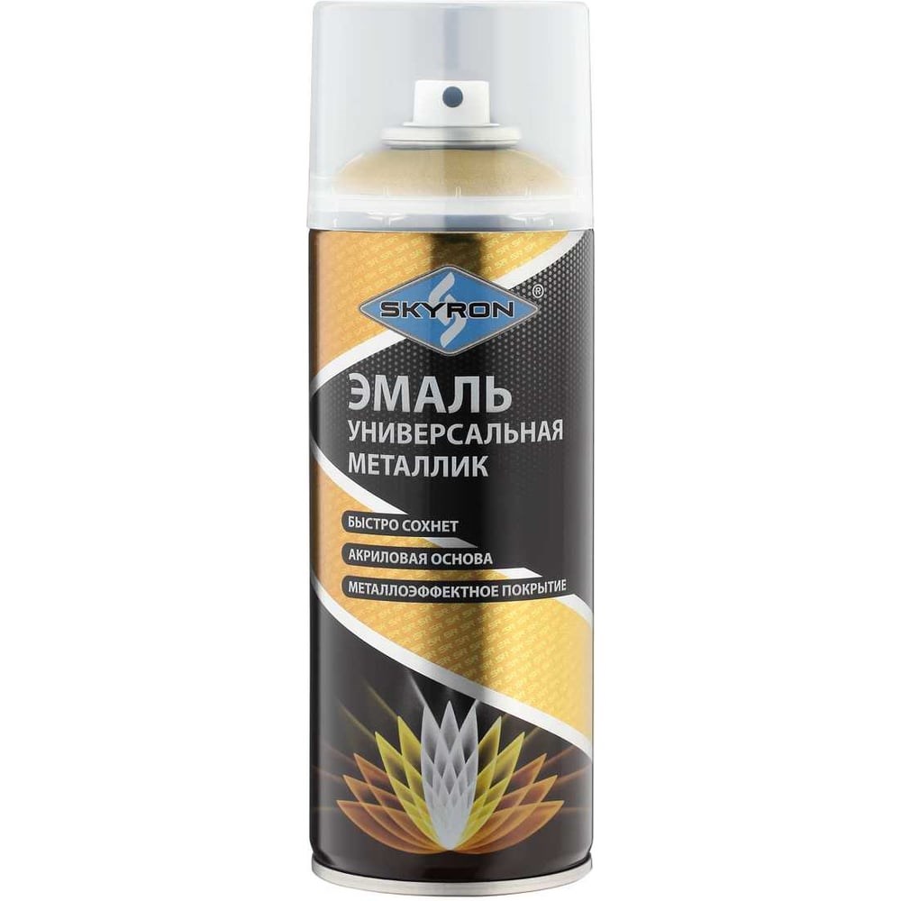 Высококачественная быстросохнущая акриловая эмаль SKYRON металлик золотисто-желтая SR-19230 предназначена для окраски предварительно загрунтованных металлических, деревянных и прочих поверхностей. Имитирует гальваническое покрытие. Применяется для наружных и внутренних работ. Аэрозольная форма выпуска позволяет легко наносить эмаль на труднодоступные места и изделия со сложной геометрией поверхности. Не стекает при равномерном нанесении. Обладает повышенной укрывистостью и превосходной адгезией к окрашиваемой поверхности. При высыхании образует прочное металлоэффектное покрытие.Способ применения: использовать при температуре не ниже +10 °С. Защитить поверхности, не подвергающиеся окраске. Перед использованием энергично встряхнуть баллон в течение 5 мин.после появления стука шарика. Направить в сторону от обрабатываемой поверхности и кратковременно нажимая на распылительную головку добиться равномерного распыления продукта. Наносить с расстояния 25-30 см. на сухую, предварительно зачищенную от рыхлой ржавчины и обезжиренную поверхность в 2-3 слоя, с промежуточной сушкой 10-15 мин. Время сушки на отлип при температуре +20 °С не менее 10 минут. Полное время высыхания при температуре +20 °С не менее 1 ч.