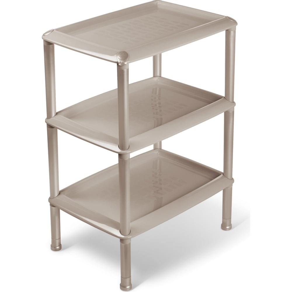 Этажерка позволит организовать пространство в небольшом помещении, например в прихожей или ванной. Пластик хорошо переносит влажность. Ухаживать за ним также легко - очистить поверхность полок можно при помощи обычных моющих средств без применения абразивных материалов. Нескользящая поверхность и бортики по краям полок обеспечат устойчивость размещенных предметов. Для удобного перемещения по комнате этажерка снабжена колесами. Рекомендуемая общая нагрузка на этажерку до 8 кг.