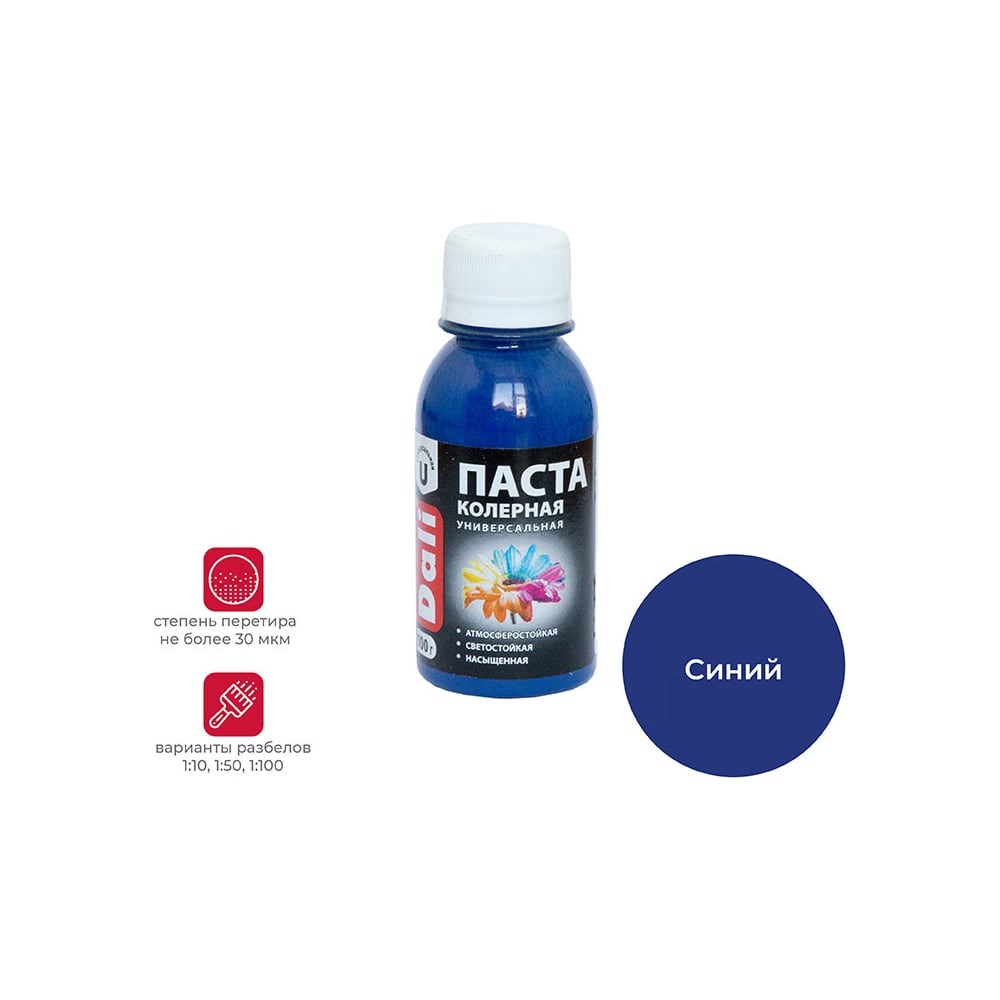 Предназначеня для колеровки водно-дисперсионных строительных и декоративных материалов и художественных и оформительских работ, роспись, декорирование. Применяется внутри и снаружи помещений: для тонирования водно-дисперсионных красок, эмалей, шпатлевок, декоративных штукатурок и др. в качестве самостоятельного покрытия по любым поверхностям (бетон, кирпич, штукатурка, дерево, бумага, обои и пр.), в т.ч. ранее окрашенным. Перед применением интенсивно встряхнуть. Для самостоятельного применения: Поверхность должна быть сухой, чистой. Краску наносить в 2 слоя с промежуточной сушкой 1 час. Для колеровки водно-дисперсионных ЛКМ: понемногу добавлять в колеруемый материал, постоянно перемешивая до получения желаемого оттенка. Для получения более точного результата, руководствоваться вариантами разбелов по Карте цветов Краски колеровочной DALI™ Допускается смешивание различных цветов между собой. Варианты разбелов: 1:10, 1:50, 1:100. Степень перетира: не более 30 мкм. Очистка инструмента: вода. Хранение и транспортировка: при t° от +5°С до +35°С выдерживает однократное нециклическое замораживание на срок до 30 суток. Срок годности: 3 года в заполненной герметичной таре. Синий
