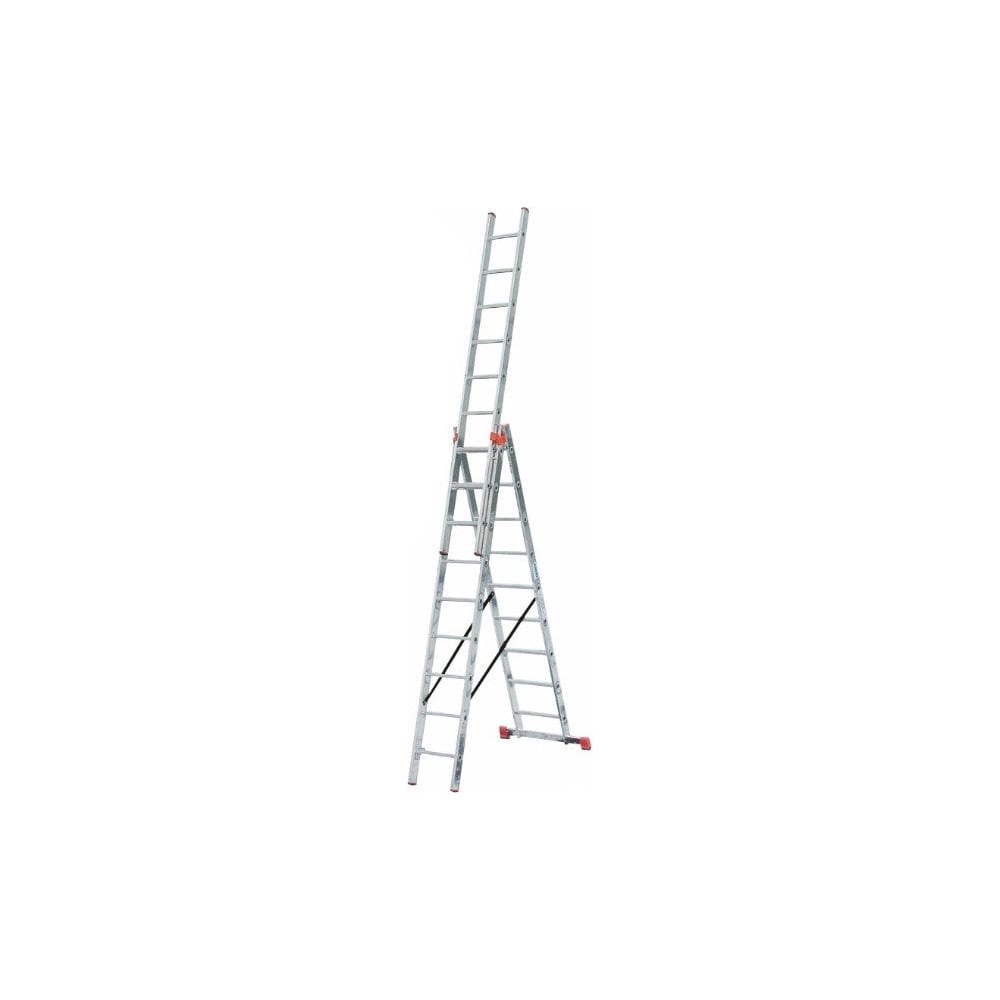 Универсальная лестница их трёх частей Krause MONTO TRIBILO 3х14 перекладин 129727 состоит из трех секций, легко и быстро трансформируется в приставную и выдвижную модель, также может применяться в качестве стремянки. Представленная лестница выполнена из алюминия, отличается высоким качеством сборки, не скользит по поверхности пола, имеет надежные фиксаторы. Самофиксирующаяся скоба для безопасной транспортировки (AutoSnap-System). Крепкие ремни, устойчивые к погодным воздействиям, предохраняют части лестниц от расхождения в положении стремянки. Продукт сертифицирован в строгом соответствии с ГОСТ Р 58752-2019 и DIN EN-131.