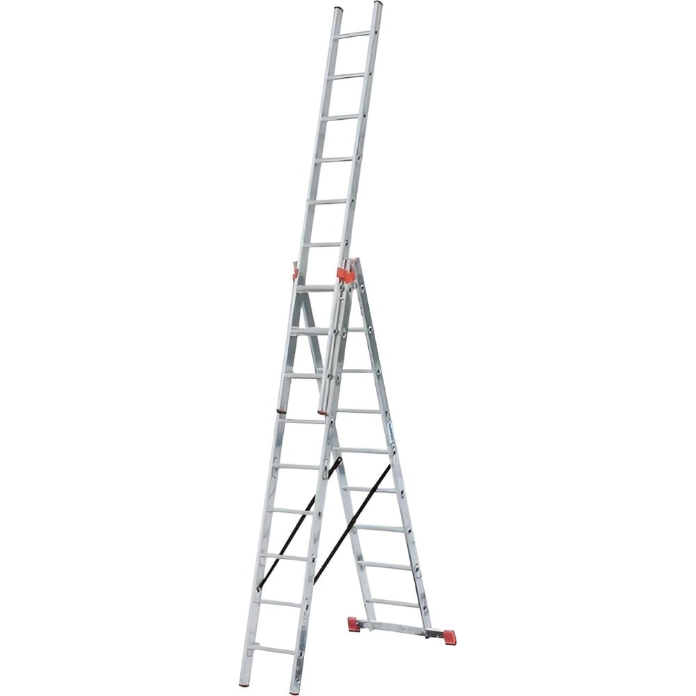 Универсальная лестница из трёх частей Krause MONTO TRIBILO 3х9 перекладин 129673 подходит для универсального применения (3 в 1: раздвижная, приставная, стремянка). Выполнена из алюминия, оборудована траверсой. Прочные профилированные перекладины надежно закреплены в боковых стойках. Самофиксирующаяся скоба для безопасной транспортировки (AutoSnap-System). Крепкие ремни, устойчивые к погодным воздействиям, предохраняют части лестниц от расхождения в положении стремянки.Продукт сертифицирован в строгом соответствии с ГОСТ Р 58752-2019 и DIN EN-131.
