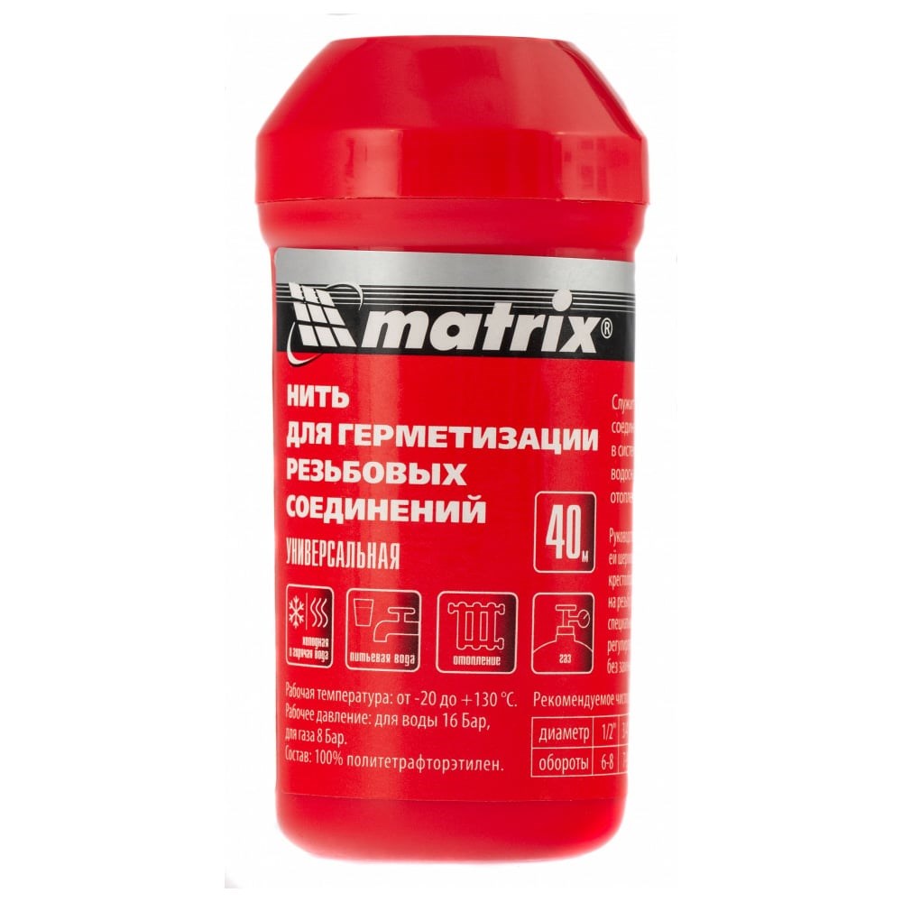 Универсальная нить Matrix 88887 длиной 40 м используется для уплотнения и герметизации резьбовых соединений. Подходит для металлических и пластиковых труб, используется для монтажа и ремонта систем отопления, газоснабжения, холодного и горячего водоснабжения. Оптимальна для труб, транспортирующих питьевую воду. Нить выдерживает давление газа до 8 бар и давление воды до 16 бар.