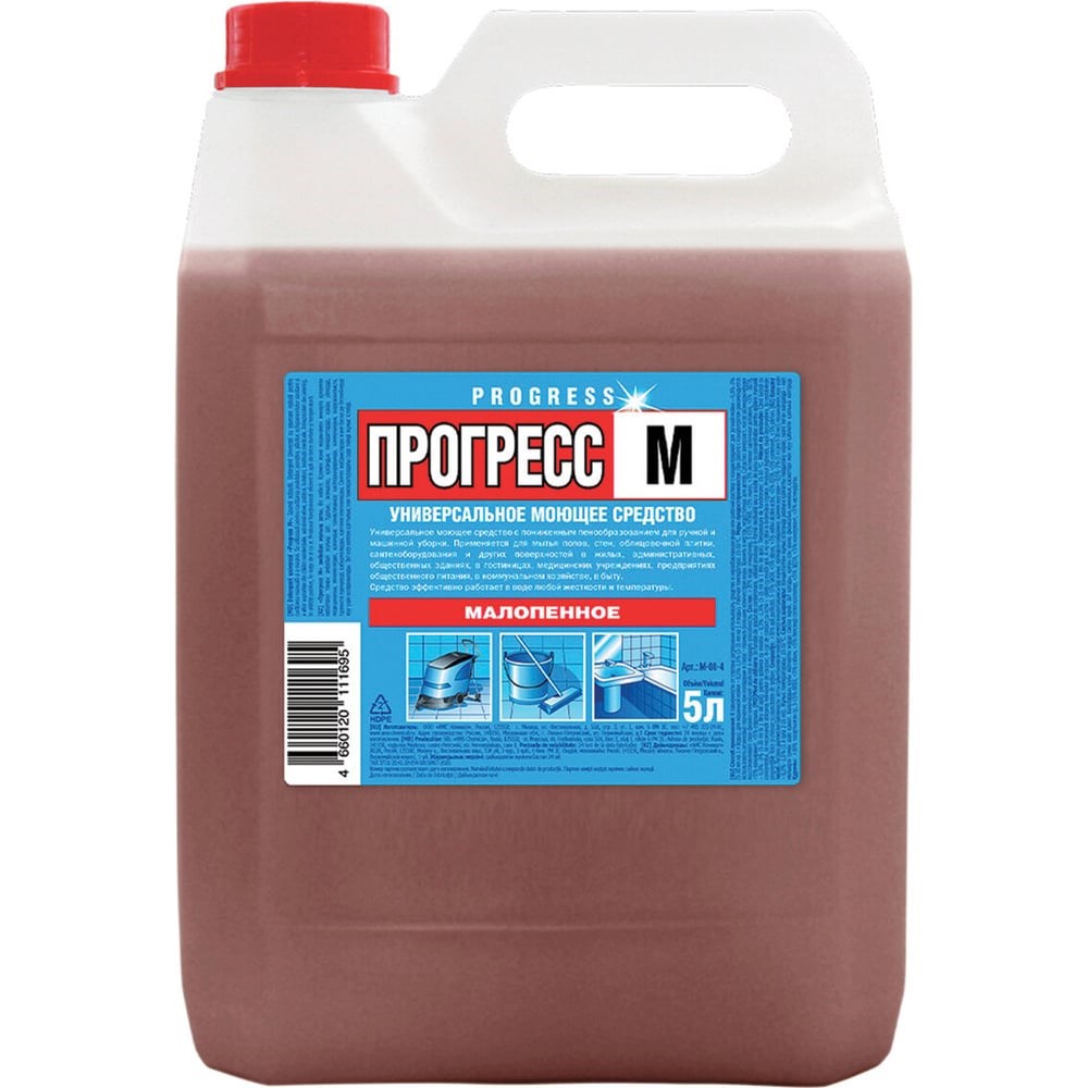 Универсальное моющее средство с пониженным пенообразованием для ручной и машинной уборки. Применяется для мытья полов, стен, облицовочной плитки, сантехоборудования.Малопенное концентрированное, слегка загущенное универсальное моющее средство для ручной и машинной уборки ПРОГРЕСС М в формате 5 л. Представляет собой высокоактивную слабощелочную систему с пониженным пенообразованием.Предназначено для мытья полов, стен, облицовочной плитки, сантехоборудования и других твердых поверхностей. Работает в воде любой жесткости и температуры. Подходит для поломоечных машин.