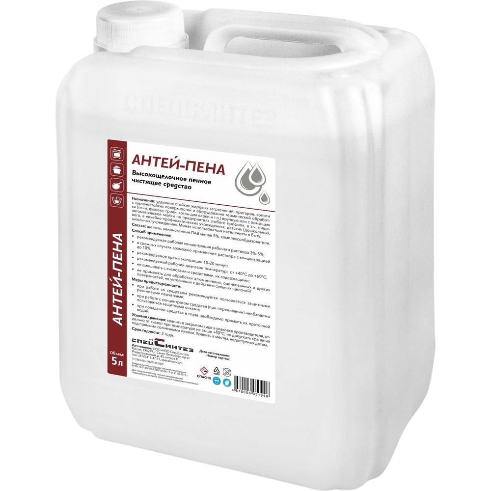 Универсальное моющее щелочное средство для удаления пригаров, копоти, дымовой смолы СпецСинтез Антей-Пена