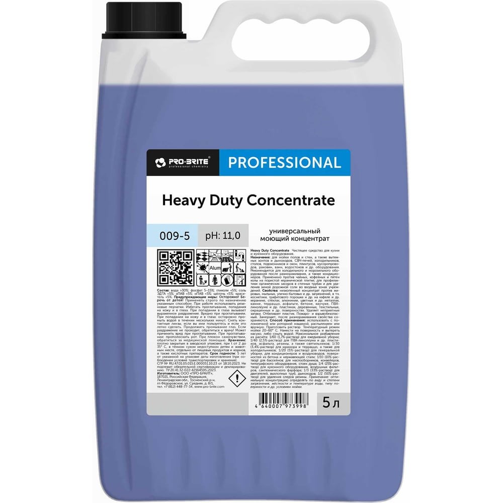 Универсальное щелочное низкопенное моющее средство PRO-BRITE HEAVY DUTY