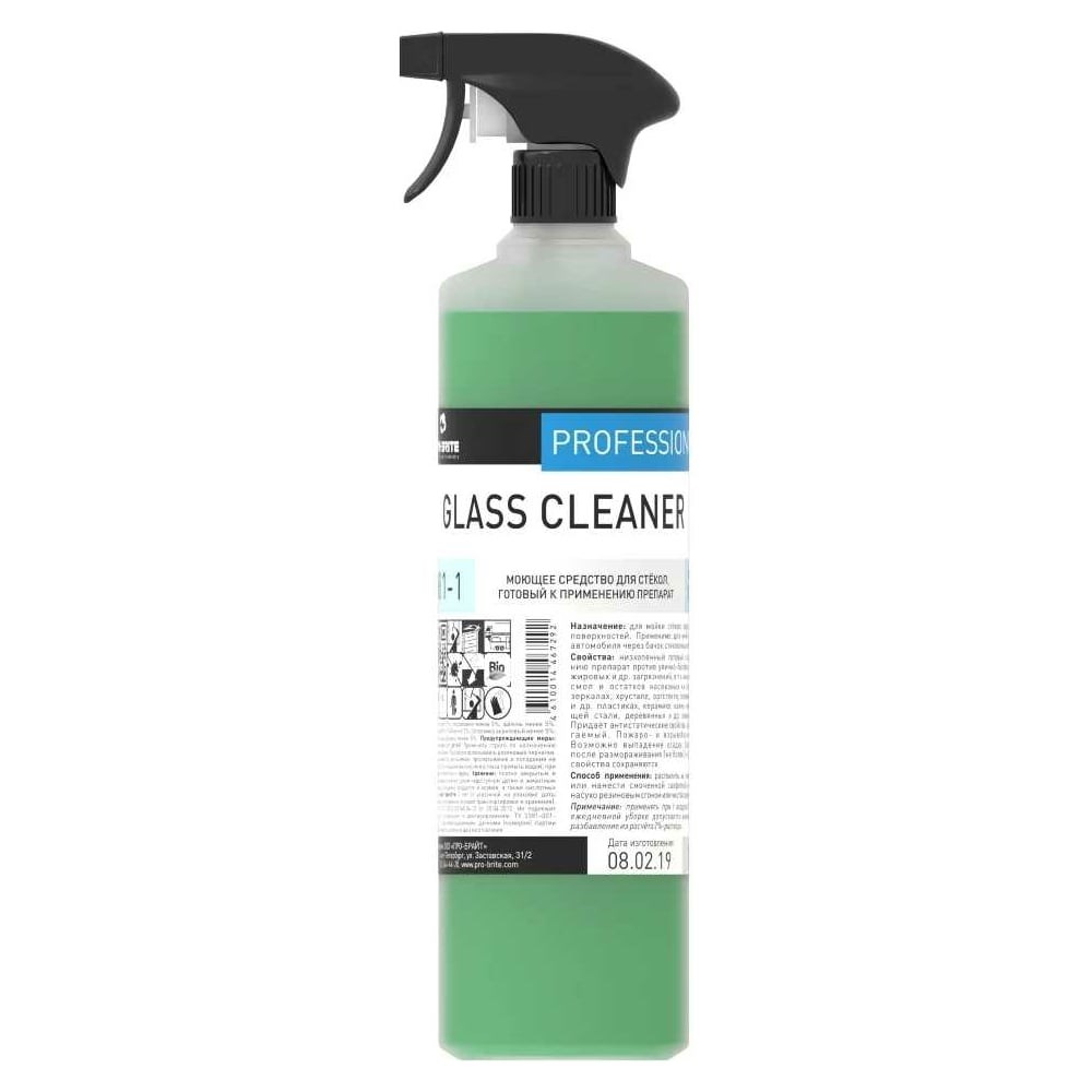 Универсальное средство для стёкол и зеркал Pro-Brite GLASS CLEANER 1 л. 081-1 предназначено для удаления загрязнений. Используется для экспресс-уборки стёкол, зеркал, люстр и иных поверхностей внутри помещений. Состав быстро высыхает, поэтому на уборку затрачивается меньше времени. Наличие ароматизатора придает помещению свежесть. Способ применения: распылить на поверхность или нанести смоченной салфеткой, вытереть насухо резиновым сгоном или чистой салфеткой. Предупреждающие меры: Беречь от детей! Применять строго по назначению указанными способами. При работе использовать резиновые перчатки. Избегать вдыхания при распылении, а также проглатывания и попадания в глаза. При попадании в глаза осторожно промывать водой несколько минут. Если раздражение глаз не проходит, обратиться к врачу. Внимание! Товар поставляется в упаковке объемом 1 литр.