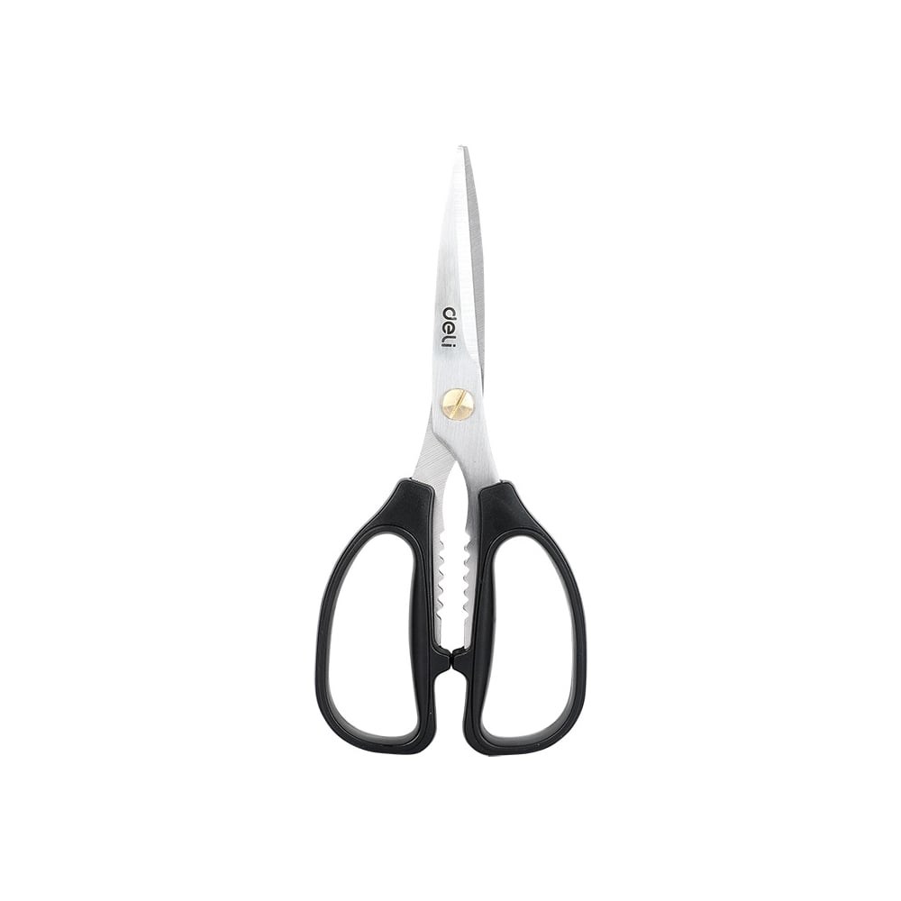 Универсальные хозяйственные ножницы Deli DL2613 изготовлены из высококачественной кованой нержавеющей стали. Благодаря особой прочности и острой заточке их сфера применения практически не ограничена. Легко справляются с разрезанием веток растений, кожей, резиной, веревок, кабелей и проводов, картона и многого другого. Оснащены "челюстью" для колки орехов, легко справляются с разрезанием куриных хрящей. Многослойная рукоять из ABS-пластика удобно лежит в руке и не скользит.
