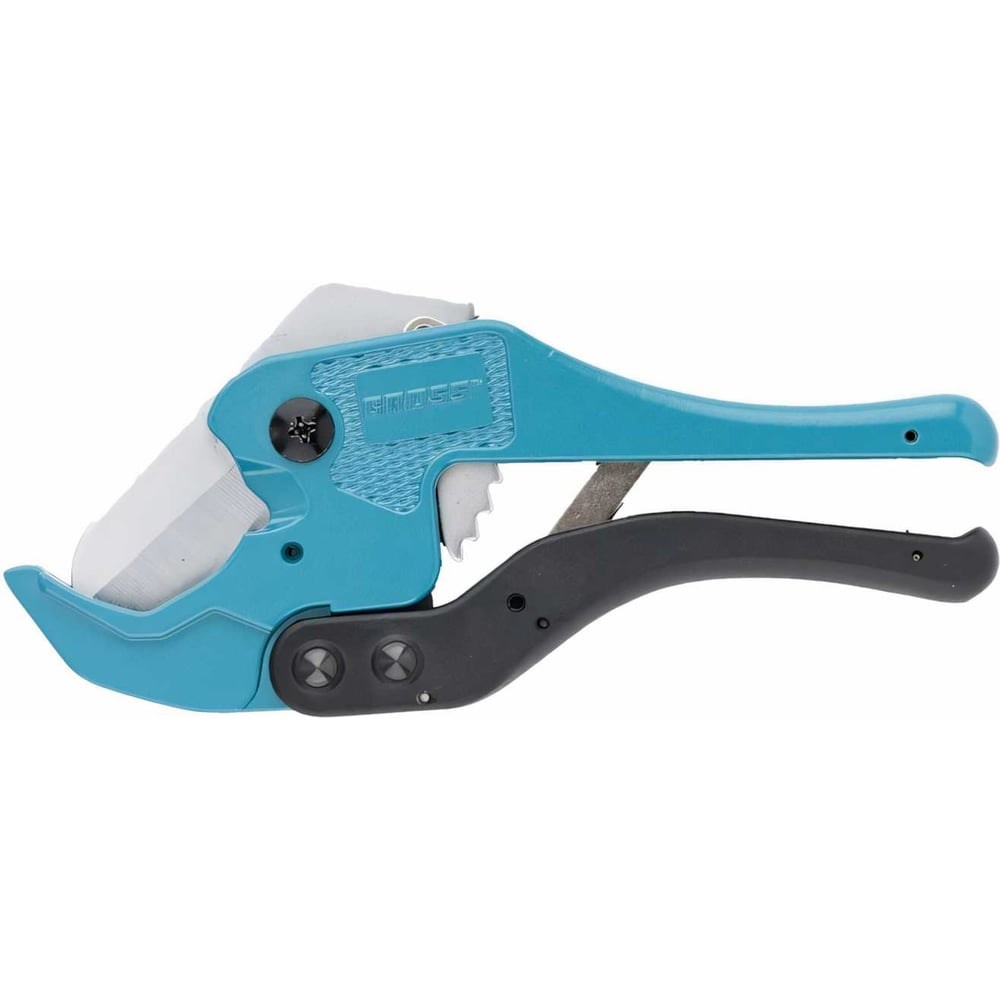 Универсальные ножницы для резки изделий из ПВХ Gross 78424 с порошковым покрытием рукояток применяются для разрезания пластиковых труб диаметром до 42 мм, а также профилей, плинтусов, галтелей, реек, планок, резиновых шлангов и других предметов. Благодаря прямому ножу инструмент может резать плоские заготовки. Ножницы пригодятся для выполнения сантехнических и отделочных работ.