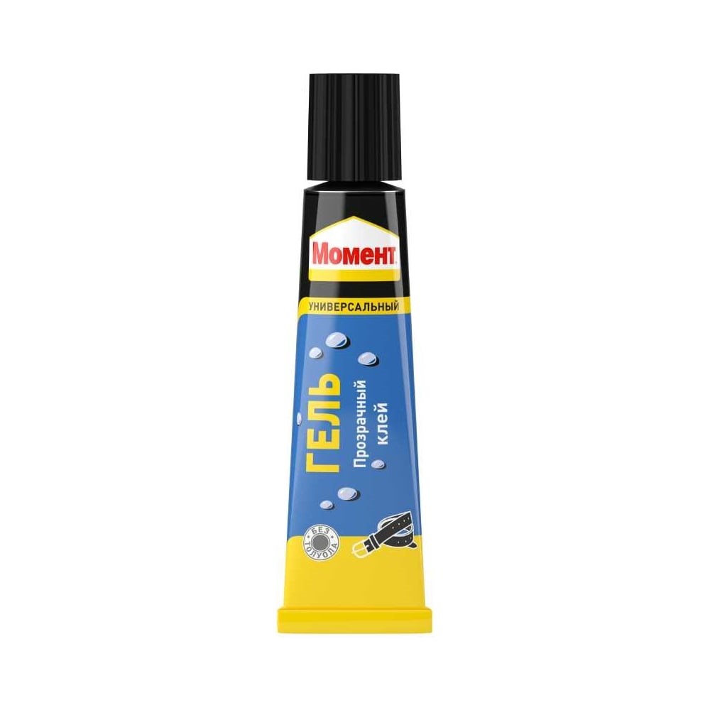 ГЕЛЬ Момент подходит для склеивания как мягкого, так и жесткого ПВХ, полистирола, оргстекла и других пластиков, а также дерева, резины, кожи, пробки, ткани, поролона, бумаги, картона, стекла, фарфора, керамики, вспененных материалов, металлов и других. Обладает высокой устойчивостью к воздействию разбавленных кислот и щелочей. Не растекается и не капает даже при нанесении на вертикальные поверхности. Не рекомендуется применять для склеивания посуды, контактирующей с пищей, стиропора, полиэтилена и полипропилена. Срок годности — 24 месяца.