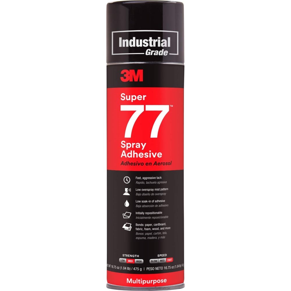Универсальный аэрозольный клей 3M Super 77 распыляется на поверхность для ее склеивания. Состав быстро высыхает и склеивает материалы за 15 секунд. Клей обладает хорошей влаго- и термостойкостью.