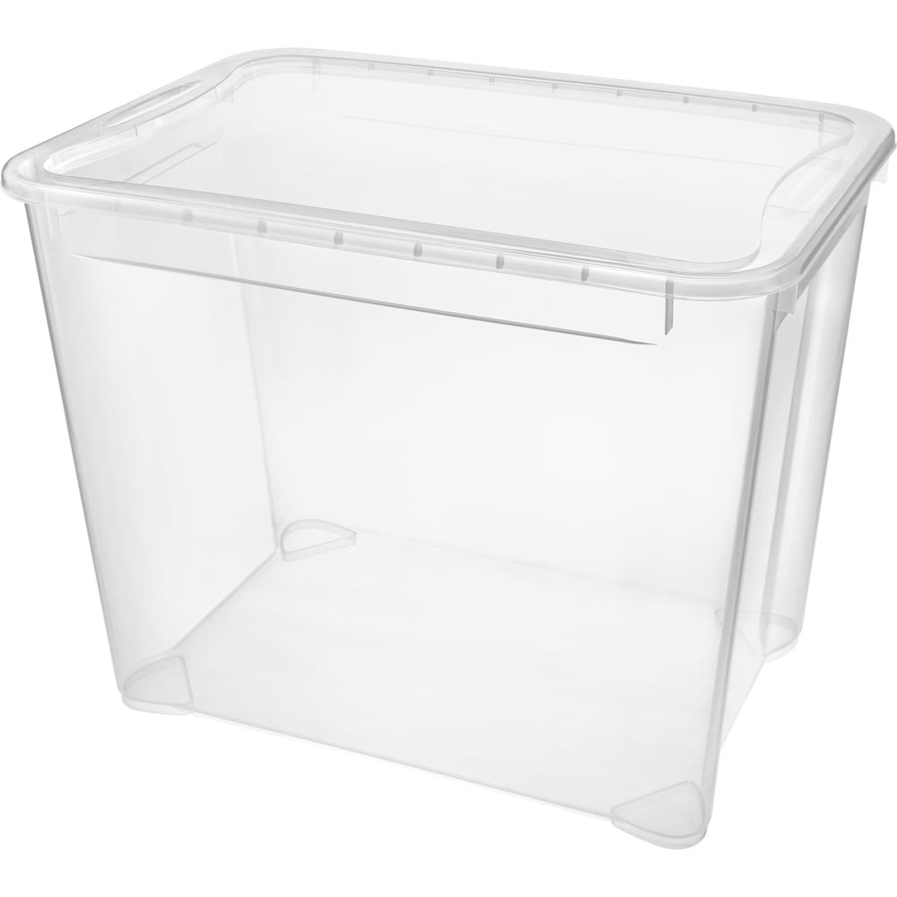 Универсальный ящик Econova Кристалл Xl 555х390х435 мм, 70 л бесцветный 433204601 предназначен для хранения игрушек, постельного белья, сезонных вещей, одежды и обуви, предметов творчества, повседневных мелочей. За счет высокой прочности прослужит долгое время. Крышка плотно фиксируется, благодаря чему защищает содержимое от пыли и влаги. Ящик имеет компактные размеры, поэтому не занимает много места.