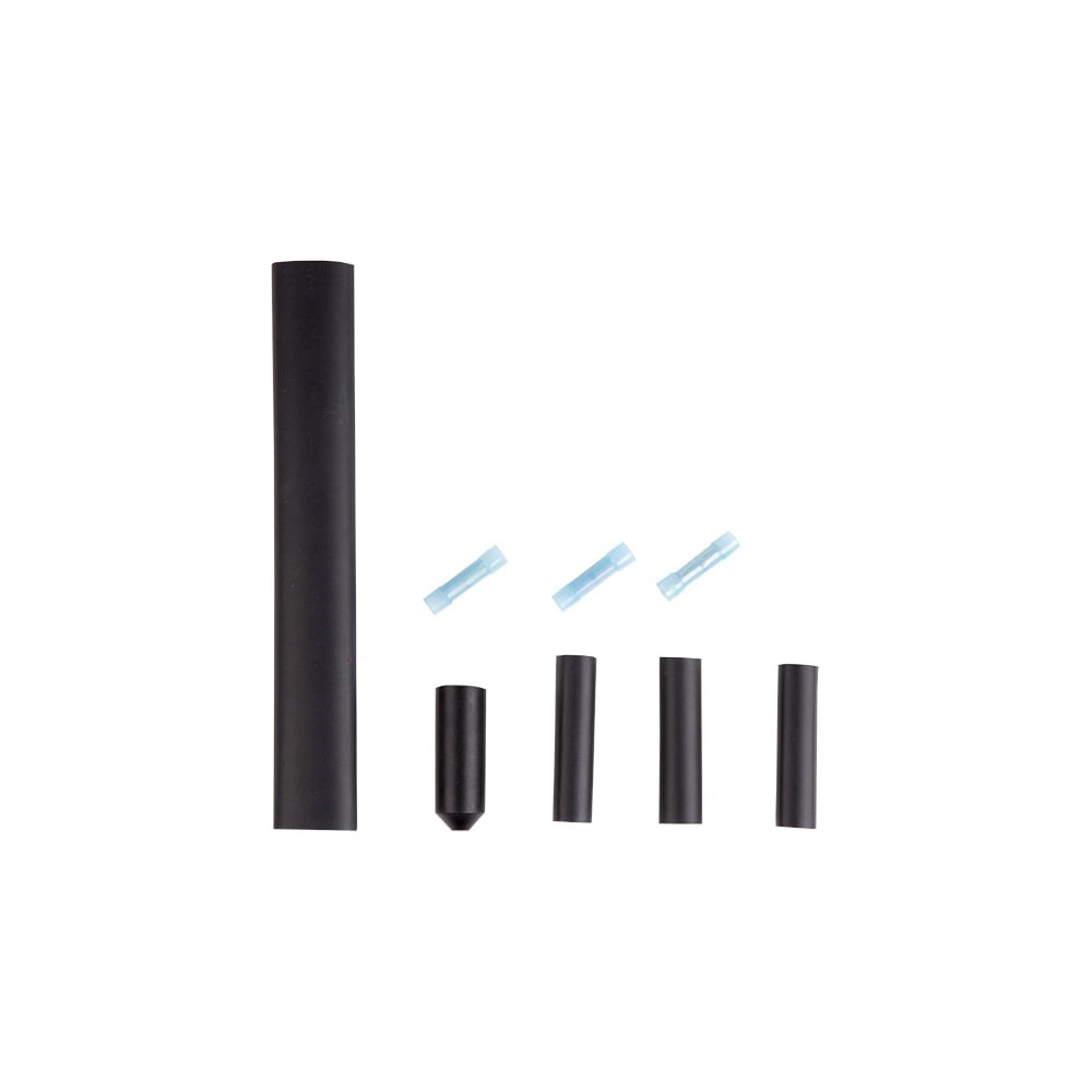 Универсальный набор REXANT предназначен для концевой заделки саморегулирующегося греющего кабеля и обеспечения герметичности его соединения с источником питания. Термоусаживаемая трубка с нанесённым внутри клеевым слоем выполняет эту задачу.Важно избегать крепления термоусадочной трубки и заглушки на влажном кабеле. Для установки используйте промышленный фен или горелку. После усадки поверхность кабеля должна быть ровной, без складок и выпуклостей. Таким образом достигается необходимая герметичность, и греющий кабель надёжно защищается от проникновения влаги, пыли и других веществ.