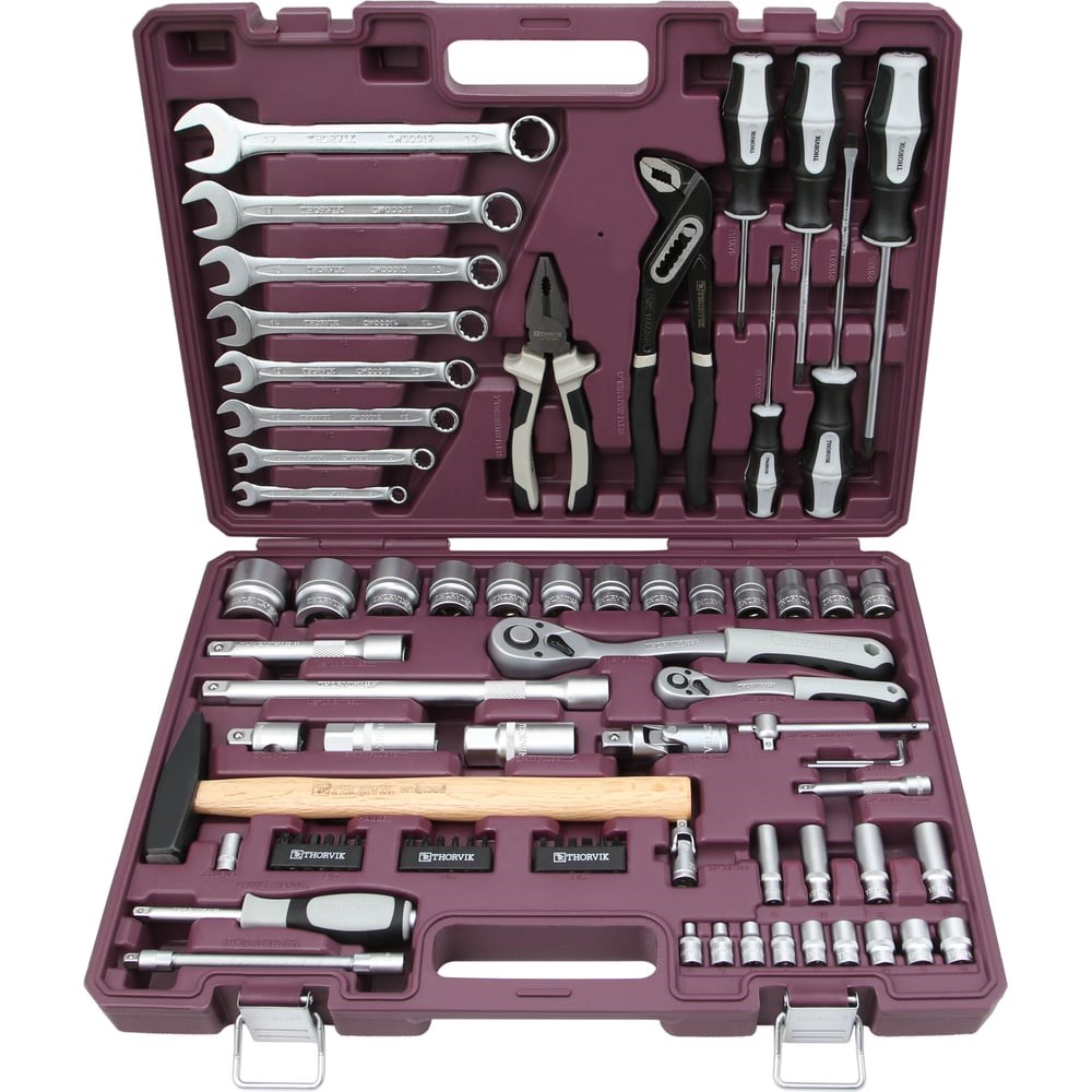 Инструментальные наборы Thorvik - это высокое качество изделий, входящих в состав наборов, удобные прочные кейсы для хранения, оптимальная комплектация позволяющая удовлетворить потребность мастера при обслуживании техники и обеспечить всем необходимым рабочее место при производстве комплексных слесарно-монтажных или механосборочных работ. Наборы Thorvik имеют ударопрочный морозоустойчивый кейс с надёжными защелками. Самые полные и удобные по наполнению комплектации для всех типов задач. Область применения. Универсальный набор инструмента с адаптированным ассортиментом изделий, позволяющих производить определенный спектр операций по обслуживанию различных резьбовых соединений, включая обслуживание непрофилированных деталей и деталей с разнообразными внутренними рабочими профилями.