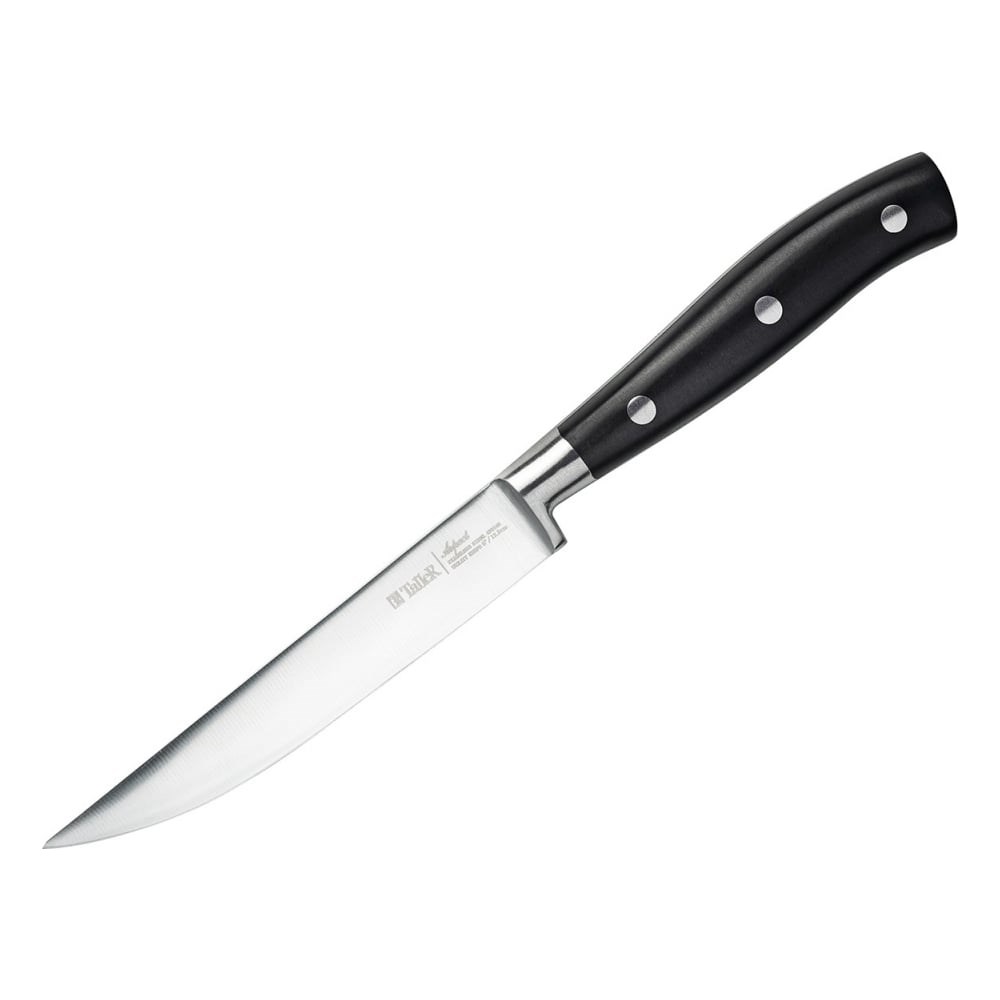 Универсальный нож TALLER длина лезвия 12,5 см нержавеющая сталь 420S45, ударопрочный пластик TR-22104 предназначен для использования на кухне. Благодаря высокой прочности прослужит долгое время. Не ржавеет, поэтому безопасен в использовании. За счет эргономичной формы нож удобно лежит в руке.
