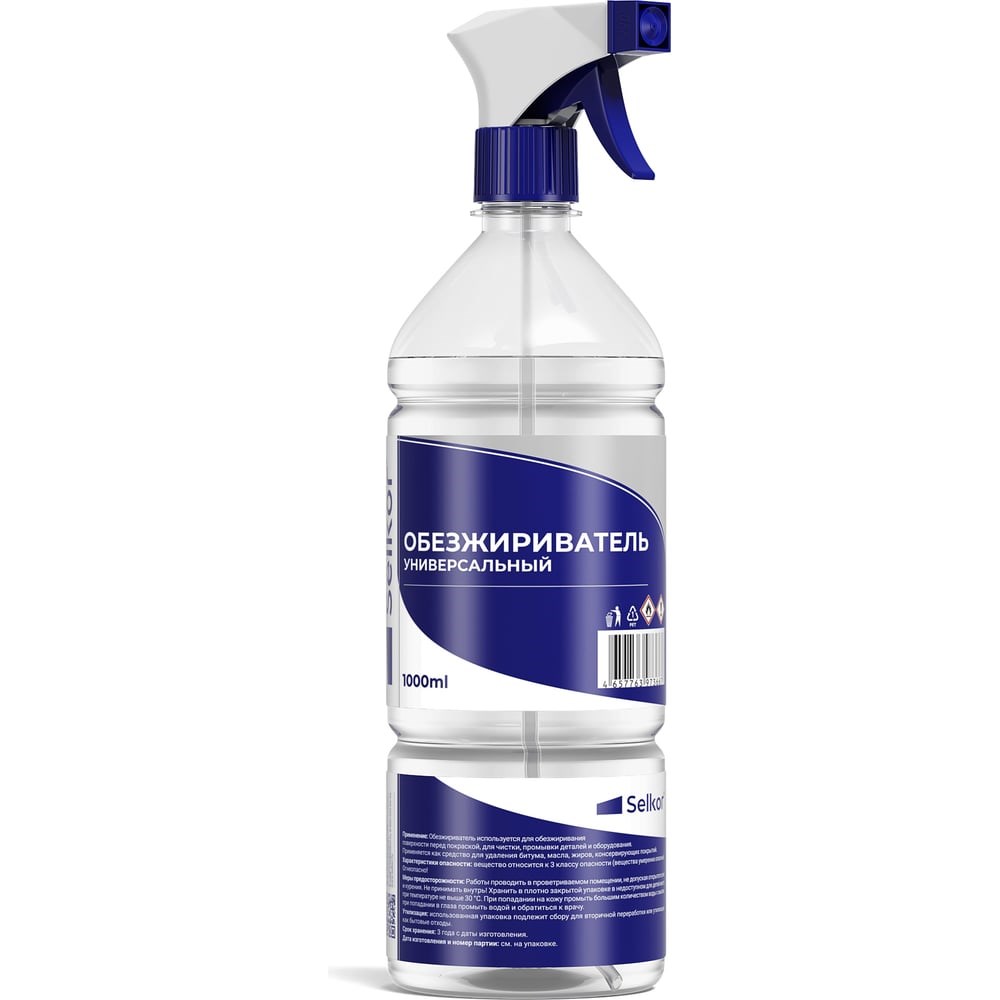 Обезжириватель универсальный с триггером Selkor 1 л 41225 используется для обезжиривания различных поверхностей перед покраской. Для чистки, промывки деталей и оборудования. Применяется как средство для удаления битума, масла, жиров, консервирующих покрытий.