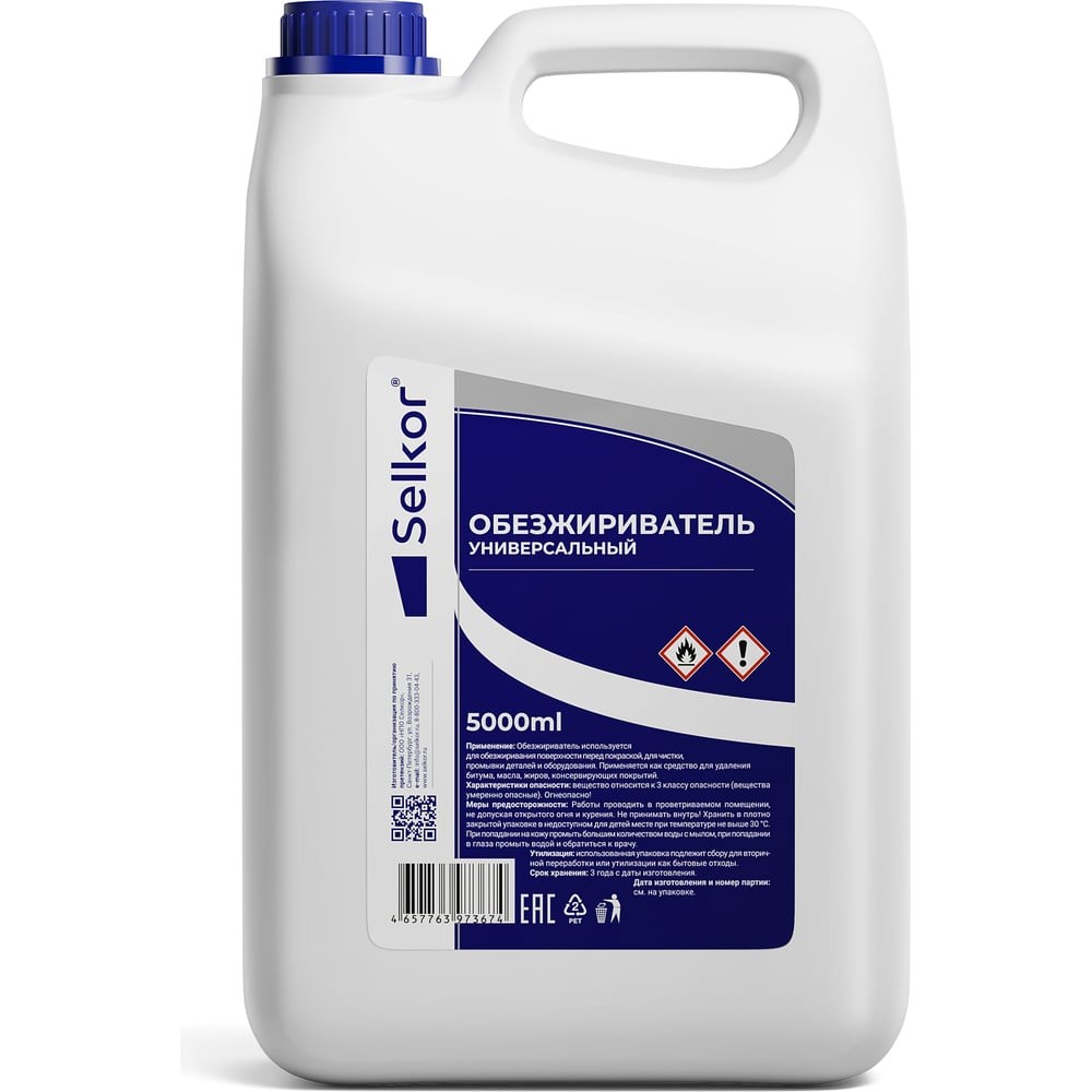 Обезжириватель универсальный Selkor 5 л 41236 используется для обезжиривания различных поверхностей перед покраской. Для чистки, промывки деталей и оборудования. Применяется как средство для удаления битума, масла, жиров, консервирующих покрытий.
