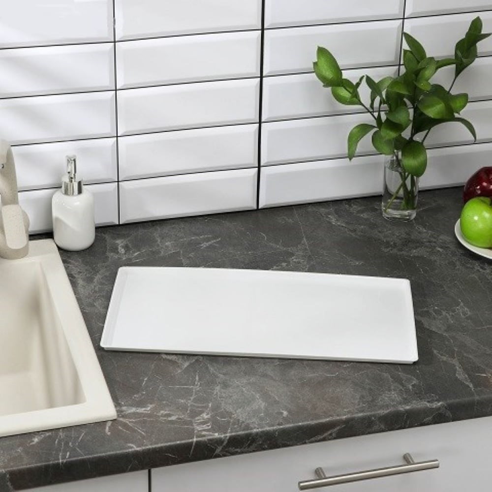 Универсальный поддон для сушилки посуды Rosenberg RUS-120009 выполнен из пластика белого цвета и отлично подходит для кухонных шкафов шириной 500 мм. Имеет бортики на краях для сбора капель воды после мытья посуды, сделан из прочного пластика, легко моется и подходит для всех типов навесных сушилок в шкафы на кухне. Универсален, используется как поддон к двухъярусным и одноярусным сушилкам, а также актуален для настольных посудосушителей. Размеры кухонного поддона под посуду 370х230 мм. Внимание! В комплект поставки входит только белый пластиковый поддон. Сушилка посуды приобретается отдельно.