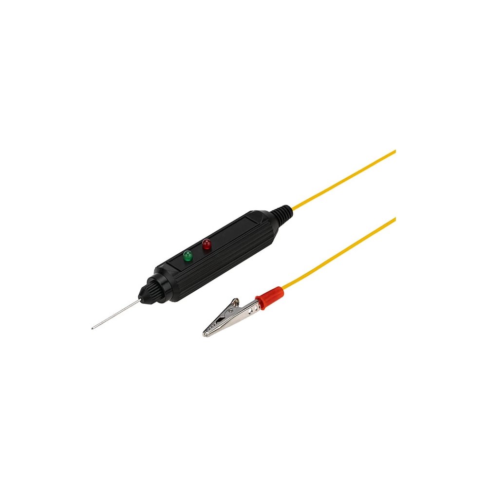 Автотестер универсальный черный (ИГЛА) REXANT предназначен для быстрой и эффективной диагностики электрооборудования автомобилей.Позволяет определить полярность напряжения (+/-), выявить замыкание и обрыв проводки без необходимости размыкать проводку - за счет возможности ввести тонкую иглу непосредственно через изоляцию в проводку или проверить предохранители, лампочки и диоды. Корпус выполнен из ударопрочного пластика и снабжен проводом с зажимом типа «крокодил», светодиодным и звуковым индикатором.Питание: 3 х LR 41
