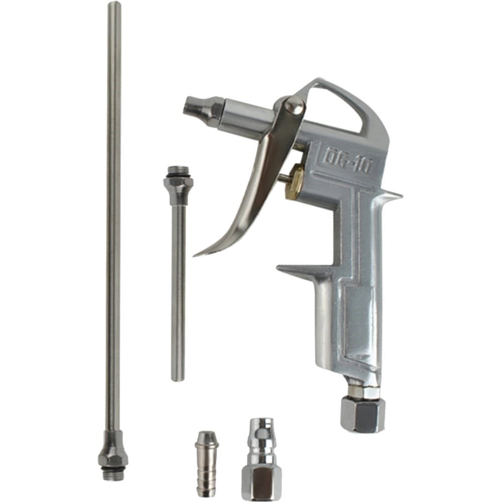 Стальной продувочный пистолет «Топ Авто» предназначен для продувки различных элементов и поверхностей сжатым воздухом из внешнего источника. Производительность инструмента – от 85 до 200 литров сжатого воздуха в минуту; рабочее давление 2-6 бар. В комплекте с данным пистолетом для продувки сжатым воздухом поставляется два сопла длиной 100 и 200 мм; тип соединения - рапид (EURO). Упаковка – блистер. Дополнительные характеристики: 2 сопла в комплекте (100 и 200 мм) Рабочее давление 2-6 Бар Производительность 85-200 л/мин Тип соединения рапид (EURO)