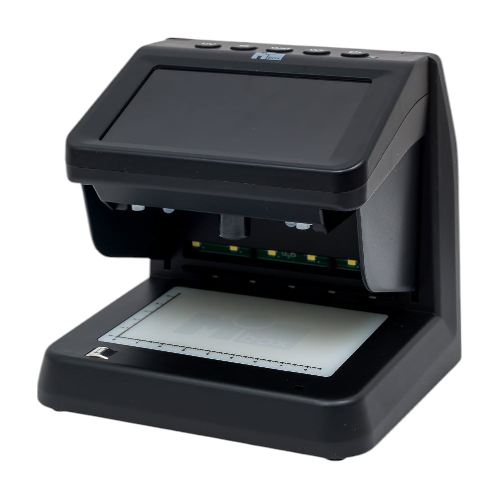 Универсальный детектор валют Mbox MD-150 предназначен для профессиональной проверки защитных признаков. Объекты проверки - деньги, ценные бумаги и документы на экспертном уровне. Виды детекции: УФ детекция (свечение купюры в ультрафиолетовом свете)Детекция наличия магнитных метокИК детекция (визуализация защитных меток, нанесенных ИК-метамерными красками)ИК детекция на просвет (для одновременной ИК образа и водяных знаков)Детекция спецэлемента "М" (визуализация в режиме двухдиапазонной ИК подсветки)Детекция специальных красок с антистоксовыми люминофорамиДетекция в белом проходящем светеДетекция в белом отраженном светеДетекция в белом косопадающем светеКонтроль размера купюры