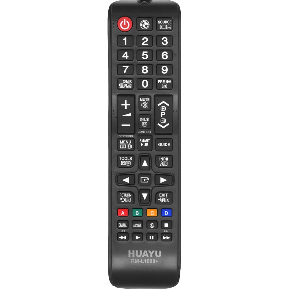 Универсальный телевизионный пульт дистанционного управления HUAYU RM-L1088+ для всех ТВ Samsung. Пульт дистанционного управления работает без настройки и подходит для любого телевизора Samsung, так как все телевизионные пульты этого бренда работают на одном сигнале. Выбирайте этот пульт если он устраивает Вас по функционалу и внешнему виду корпуса. Пульт изготовлен в соответствии с высокими мировыми стандартами качества и безопасности, что подтверждается соответствующей сертификацией товаров Huayu. Рекомендуется для замены ПДУ в схожих корпусах: BN59-01199G AA59-00741A BN59-01268D BN59-01315B BN59-01175N BN59-01199F BN59-01303A AA59-00602A BN59-01315G AA59-00603A AA59-00630A AA59-00714A AA59-00721A AA59-00742A AA59-00743A AA59-00786A AA59-00796A AA59-00818A AA59-00823A BN59-01175R BN59-01180A BN59-01189A BN59-01189B BN59-01199L BN59-01247A BN59-01248A BN59-01268G BN59-01305A BN59-01315A BN59-01315D BN59-01315M AA59-00666A