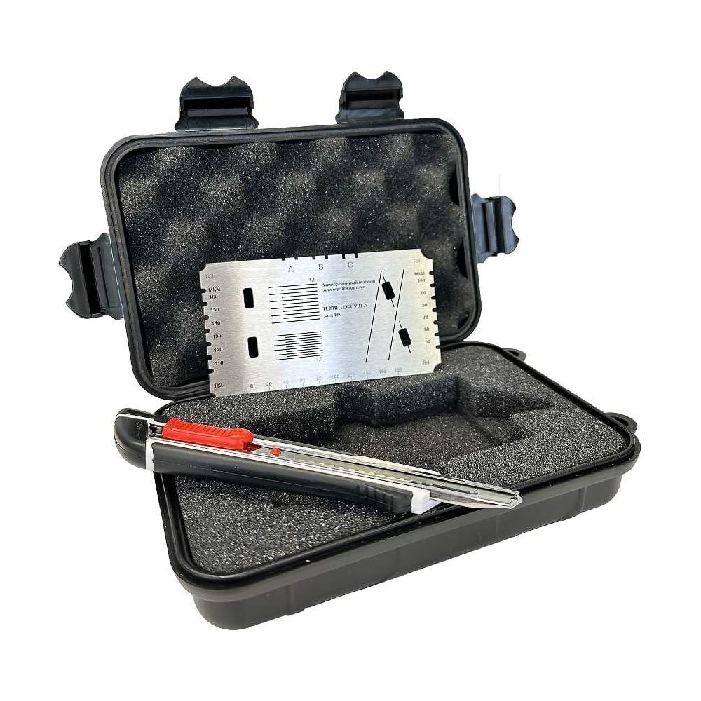 Универсальный шаблон для оценки адгезии ТЕХИНТЕСТ УШ-А предназначен для: определения адгезии методом надрезов по стандартам ГОСТ 15140, ГОСТ 31149 (ISO 2409), ISO 16276-2, ISO 2409, ASTM D 3359; определения адгезии по методу Х-образного надреза по стандартам ГОСТ 32702.2, ISO 16276-2, ASTM D 3359; оценки толщины неотвердевших покрытий на плоских изделиях в соответствии со стандартом ГОСТ 31993-14, ISO 2808; нанесения клинообразных слоев ЛКМ фиксированной толщины на стандартные пластины для проведения комплексных испытаний по стандартам ГОСТ 8832, ISO 16862 и ASTM D823; определения розлива ЛКМ; проверки радиуса закругления краев изделия.