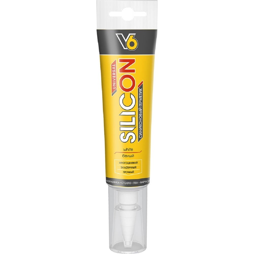 Cиликоновый универсальный герметик V6 (белый; 80 мл) 11593743 предназначен для герметизации, уплотнения и склеивания. Влагоустойчивый и эластичный после отверждения, антигрибковый, атмосферостойкий, износостойкий, УФ-стойкий.