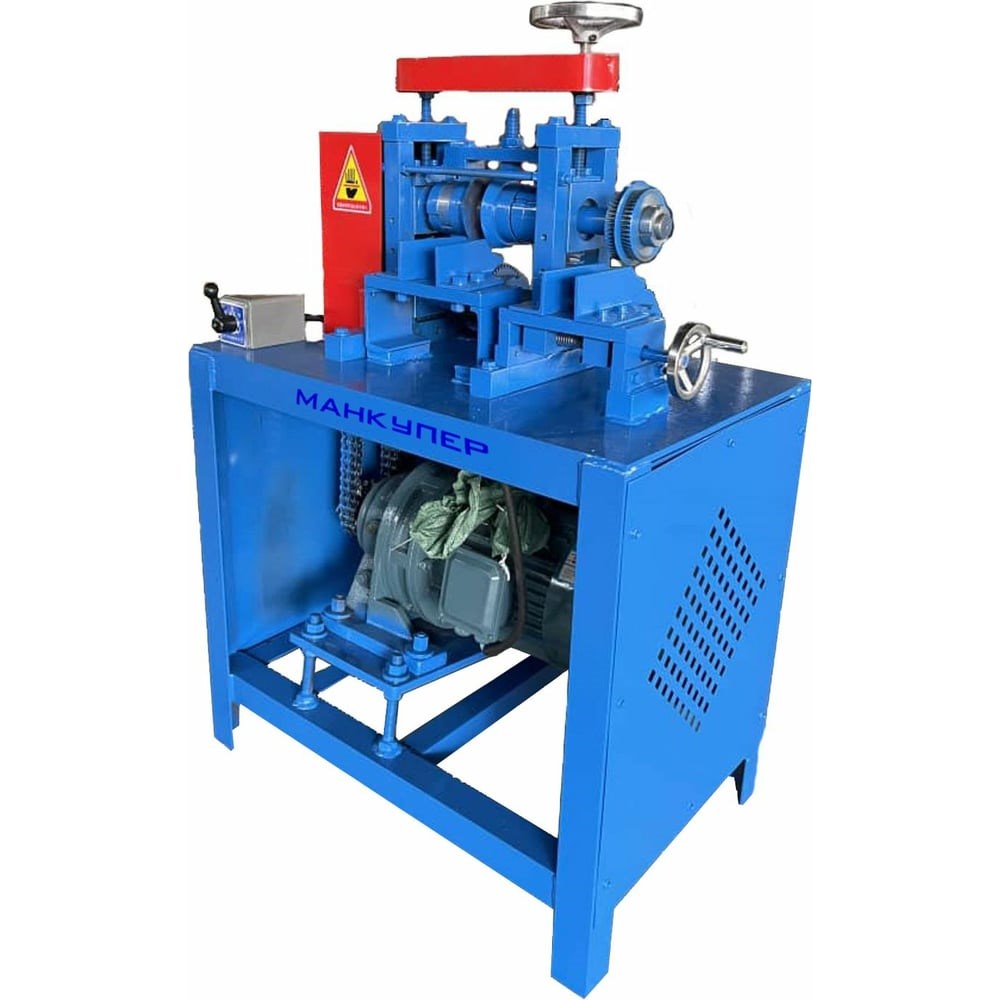 Универсальный станок для разделки теплообменников/ершей/кабеля Манкупер MRR-21 прост в использовании. Перед началом работы необходимо настроить входа - они регулируются болтами в зависимости от диаметра теплообменника. На станке MRR-21 встроена регулировка по высоте, также в зависимости от диаметра наружного теплообменника. Для корректной работы ножи на верхнем валу регулируются под диаметр трубки теплообменника посредством ослабления шестигранников, а дополнительный нож сверху не дает им заворачиваться. На нижнем валу установлена протаскивающая шестерня, которая «тянет» теплообменник под ножи. Станок имеет реверс, что позволяет разделывать материал прямым и обратным ходом. Вход для разделки кабеля оснащен двумя круглыми ножами: верхним и нижним. Кабель глубоко разделывается с двух сторон. Настройка под диаметр разделываемого кабеля происходит посредством вентиля с правой стороны от входа. Преимуществом данного станка является универсальная система обработки теплообменников и кабеля на одном устройстве, что экономит рабочее пространство. MRR-21 с легкостью расправляется с алюминиевым покрытием и оставляет в целостности стальную или медную трубу теплообменника. MRR-21 лучше подходит для теплообменников с тонкими алюминиевыми, латунными трубками и трубками из нержавейки