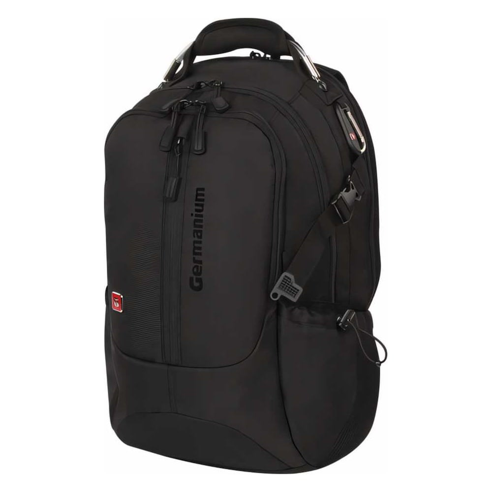 Универсальный рюкзак GERMANIUM S-01 с отделением для ноутбука, влагостойкий, черный, 226947 позволяет эффективно организовать хранение вещей. Функциональность. Для хранения множества мелочей предусмотрен карман-органайзер. Имеется специальное выделенное отделение для ноутбука с диагональю до 15”, планшета и документов, одно основное вместительное отделение, два передних кармана и два боковых кармана, затягивающихся шнурком с удобными фиксаторами. Долгий срок службы. Модель выполнена из прочного материала, который устойчив к разрывам и истиранию. Комфорт. Формоустойчивая спинка с системой циркуляции воздуха Airflow и плечевые ремни анатомической формы позволяют перемещаться с ним легко и удобно. Дополнительные характеристики Совместим с диагоналями экрана: 13", 14", 15" Тип рюкзака: универсальный Количество основных отделений: 2 Количество карманов: 4 шт. Количество карманов из эластичной сетки: 2 шт. Стягивающие боковые ремни: да Вентилируемая спинка: да Внутренний органайзер: да Наличие ручки для переноса: да Наличие колес: нет