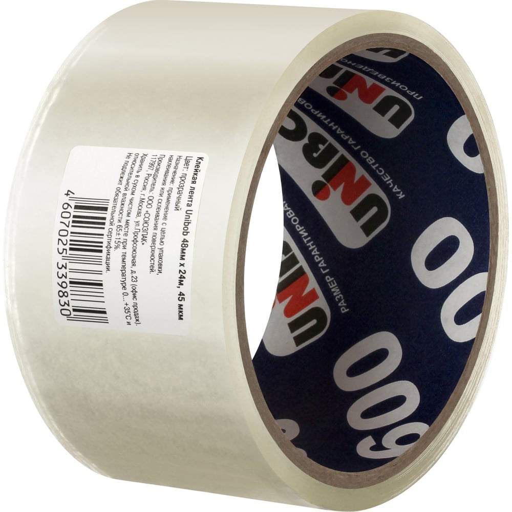 Упаковочная клейкая лента UNIBOB прозрачная 48 мм х 24 м, 45 мкм 214936