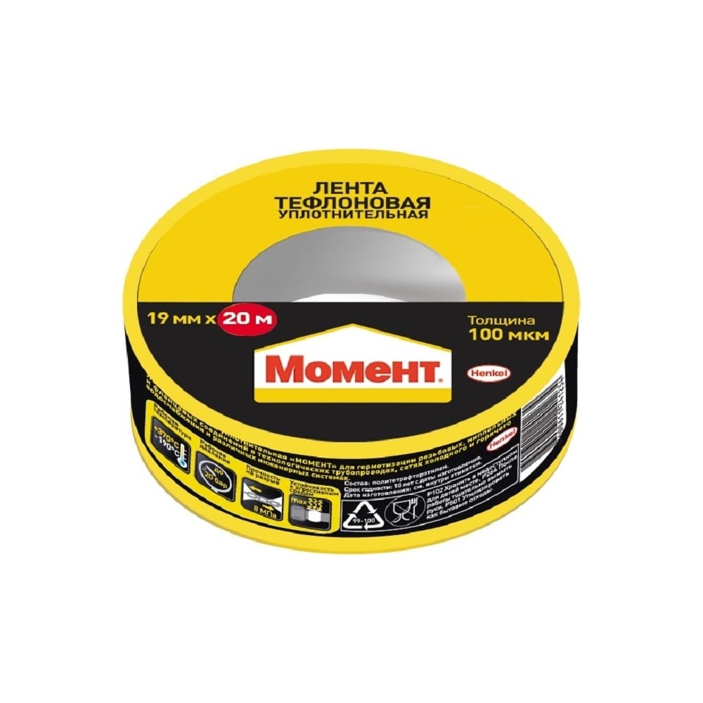 Уплотнительная лента Момент 2230214 тефлоновая, ФУМ, 20 м 2230214 предназначена для быстрой, надежной и удобной герметизации труб и резьбовых соединений при рабочей температуре от -190 до +370 градусов. Инструкция: (температура применения от +5 до +45 градусов) Использовать ткань или металлическую щетку для очистки внутренней и наружной резьбы трубок. Удалить с резьбы старую уплотнительную ленту, грязь и смазку, снижающие качество соединения, и дать трубам высохнуть. Взять отрезок ленты и навернуть на первый виток резьбы у открытого конца трубки с наружной резьбой. Обернуть ленту вокруг резьбы, чтобы перекрыть ее начальный конец. Начать оборачивать ленту вокруг патрубка в направлении движения резьбы, последующий виток ленты должен перекрывать предыдущий на половину ее ширины. В процессе наматывания ленты ногтем пальца проталкивать ее в бороздки резьбы для обеспечения ее плотного прилегания к поверхности. Продолжать наматывать ленту на резьбу до последнего витка. Оторвать ленту вручную и ножницами обрезать кончик. При использовании труб из нержавеющей стали нанести на резьбу второй слой ленты, в остальных случаях достаточно одного слоя. Навернуть трубку с внутренней резьбой на патрубок с нанесенной лентой в направлении резьбы. Область применения: Герметизация резьбовых, ниппельных и фланцевых соединений в технологических трубопроводах, сетях холодного и горячего водоснабжения и различных инженерных системах, работающих под давлением, не превышающем 8 МПа.