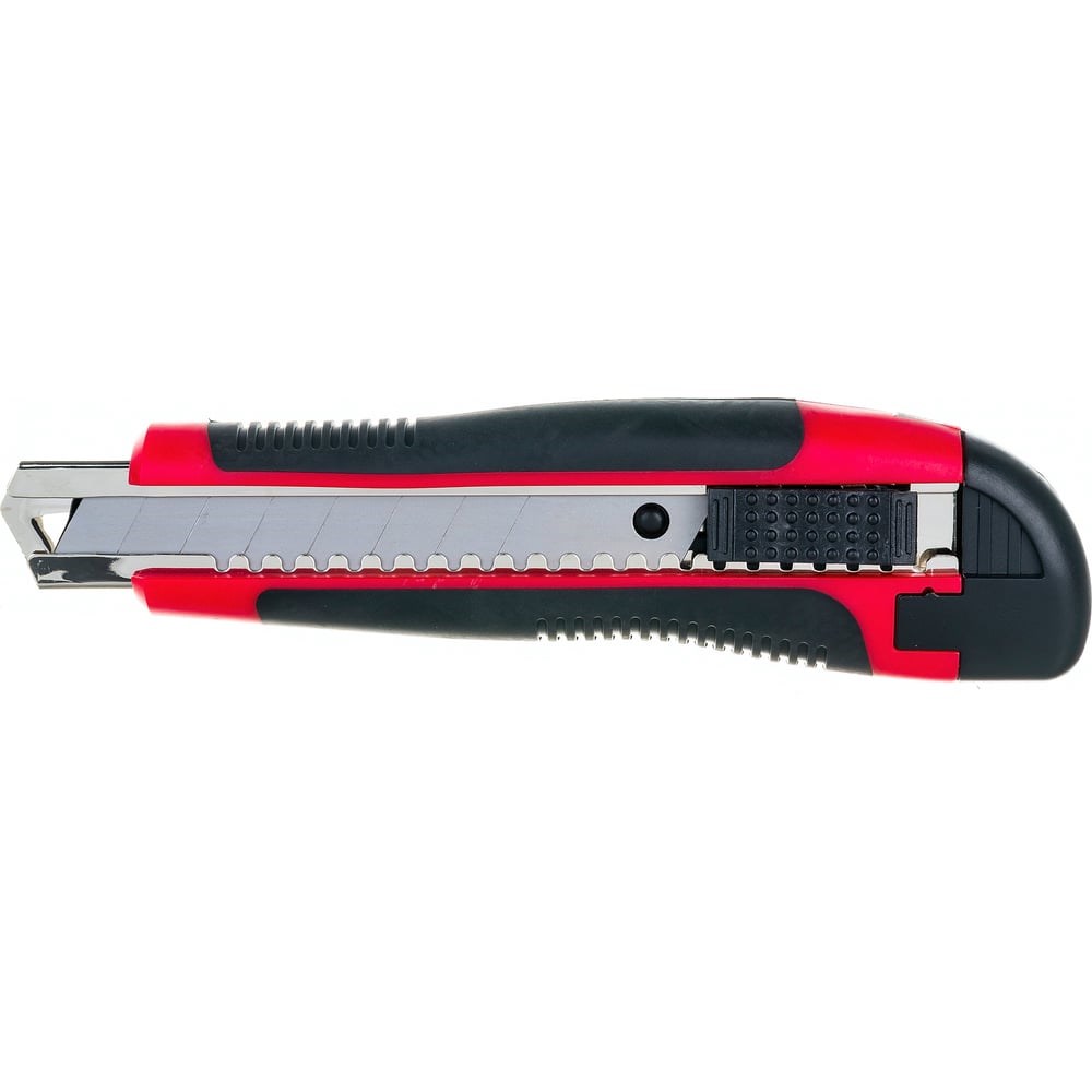 Используется для разрезания тонких мягких материалов: бумаги, картона, обоев, линолеума и упаковочной ленты. Материал корпуса: пластик; Материал лезвия: инструментальная сталь; Ширина лезвия: 18 мм.