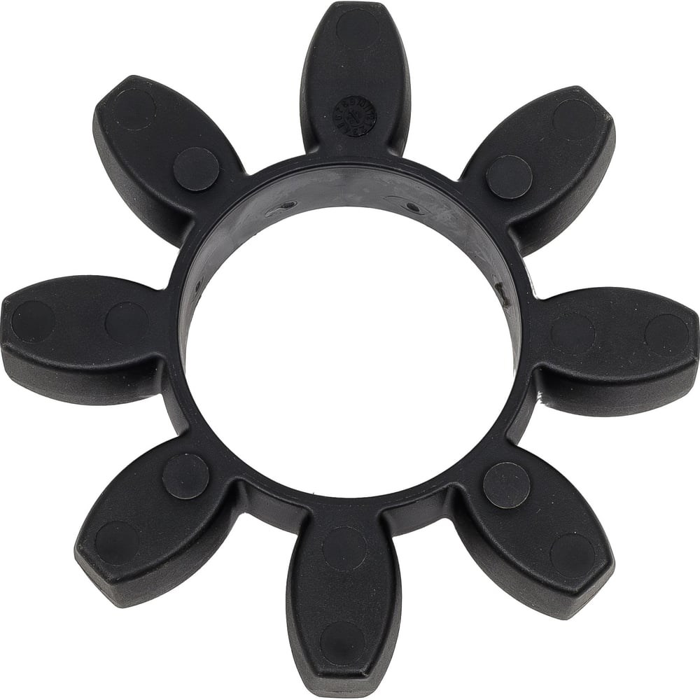 Упругий элемент типа паук черный предназначен для осуществления упругой связи между соединительными муфтами кулачкового типа. Конструкция эластичного элемента имеет 8 лучей. Изготовлен из полиуретана черного цвета. Ему соответствует твердость 94 Shore A.