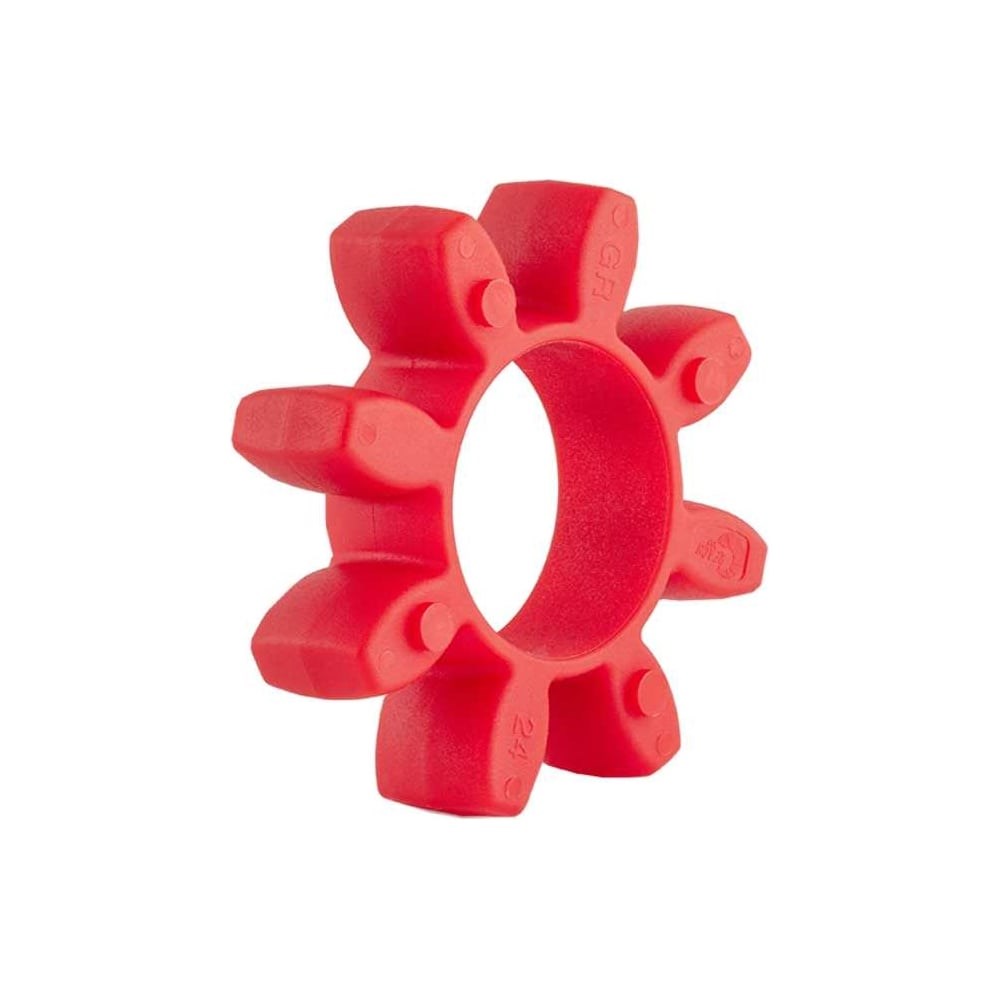 Упругий элемент типа паук красный предназначен для осуществления упругой связи между соединительными муфтами кулачкового типа. Конструкция эластичного элемента имеет 8 лучей. Изготовлен из полиуретана красного цвета. Ему соответствует твердость 98 Shore A.