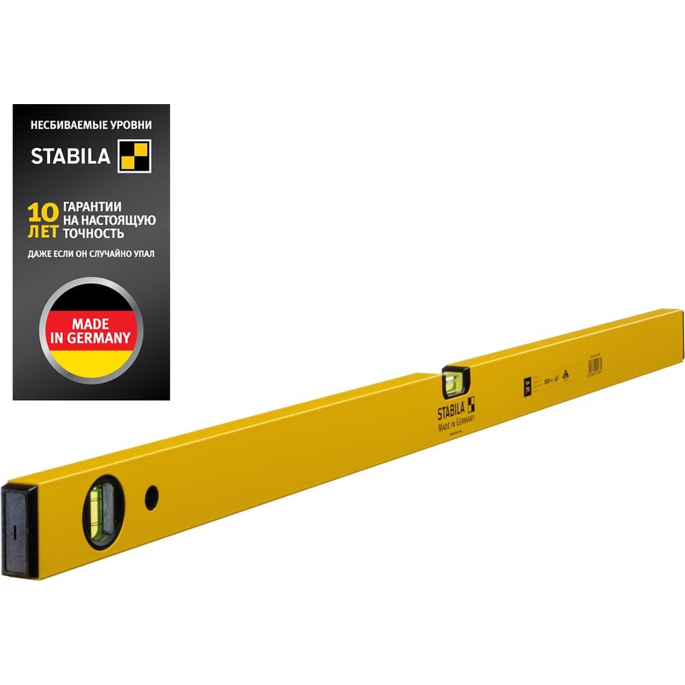 Уровень тип 70, 100 см STABILA 02288 позволяет определить отклонение горизонтальной, либо вертикальной поверхности при проведении ремонтных или отделочных работ. Длина изделия составляет 1000 мм. Корпус из легкого металла с порошковым покрытием отличается износоустойчивостью. Заглушки исключают попадание пыли внутрь уровня.