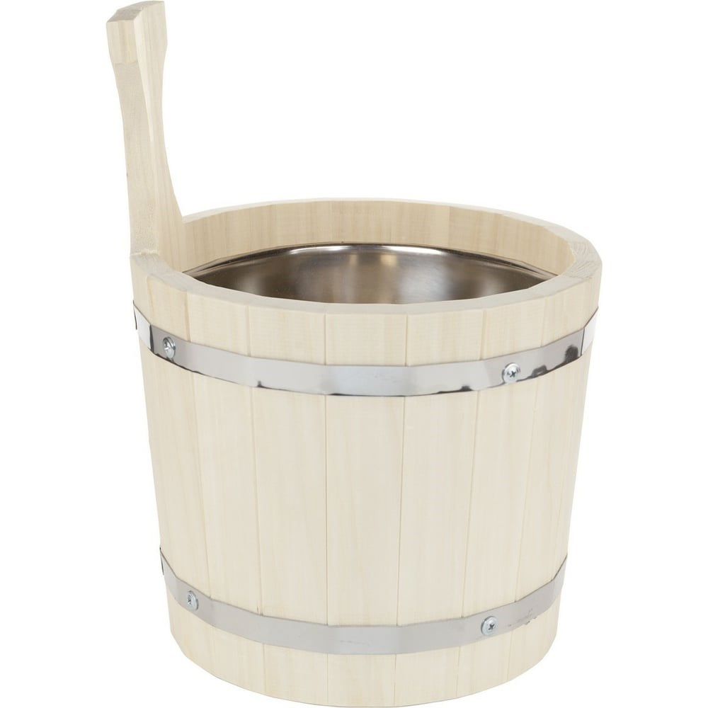 Ушат Банная линия 5 л, с нержавеющей вставкой, липа 12-434 является просто незаменимым элементом, без которого не обойдется ни один поход в баню. Ушат изготовлен из натуральной экологически чистой древесины и не подвержен воздействиям высоких температур и влажности. Данное изделие прекрасно подходит для умывания, обливания, замачивания веника и т.д. Специальные металлические обручи способствуют повышению прочности конструкции. Приобретение такого банного аксессуара, как деревянный ушат объемом 5 литров с нержавеющей вставкой станет настоящим подарком для всех любителей бани и сауны.