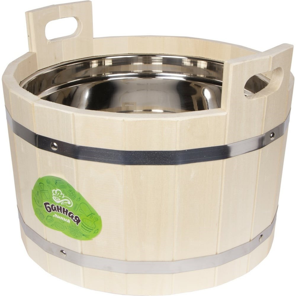 Ушат Банная линия 15 л, с нержавеющей вставкой, липа 12-436 является просто незаменимым элементом, без которого не обойдется ни один поход в баню. Ушат изготовлен из натуральной экологически чистой древесины и не подвержен воздействиям высоких температур и влажности. Данное изделие прекрасно подходит для умывания, обливания, замачивания веника и т.д.